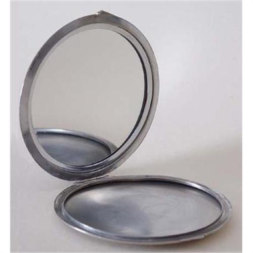 <tr><td>Title:Silver Plated Large Mirrored Powder Compact</td></tr>