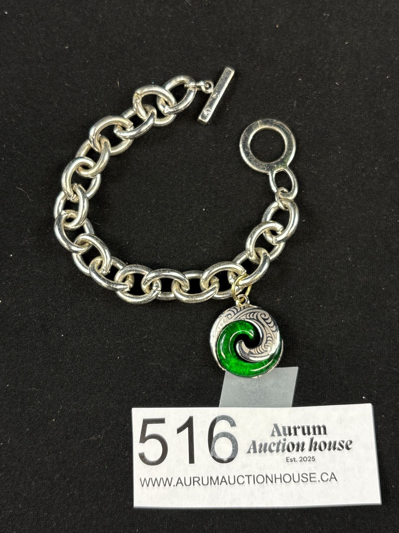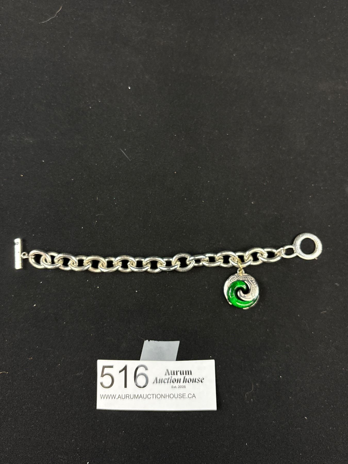 Silver Plated Links w/ One Charm Bracelet, Original Toggle Clasp