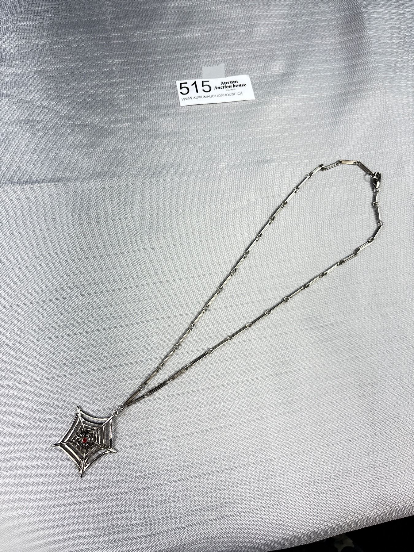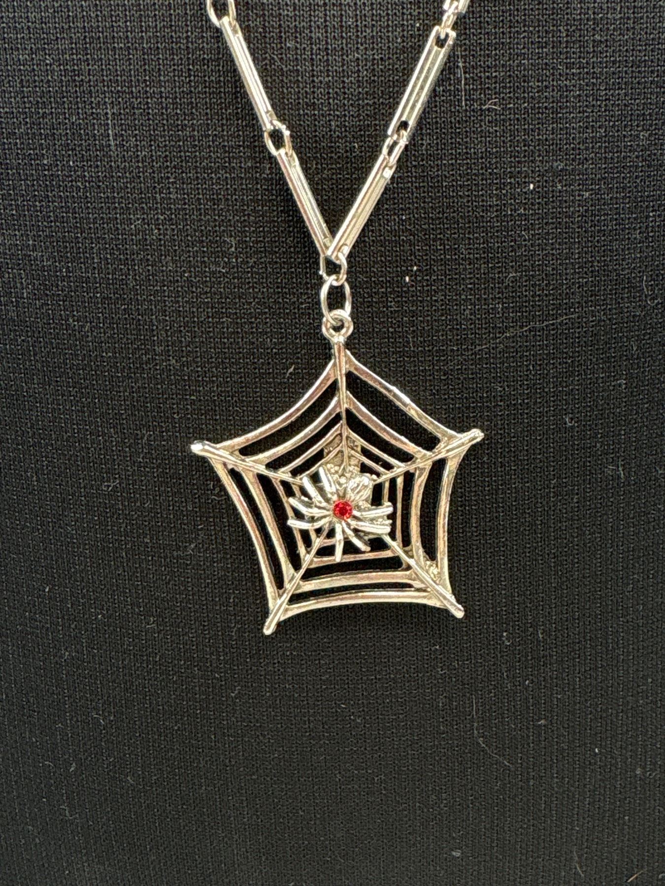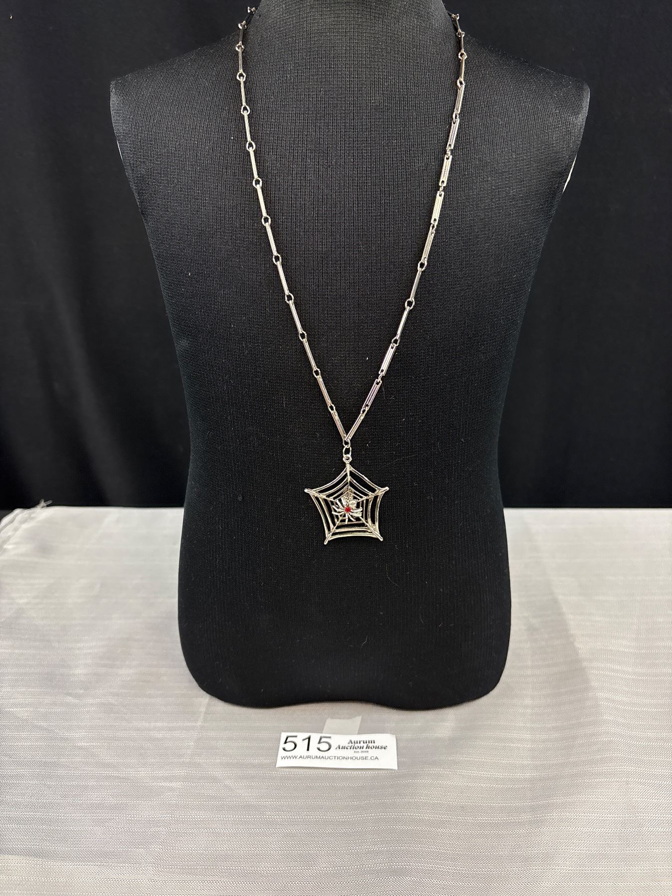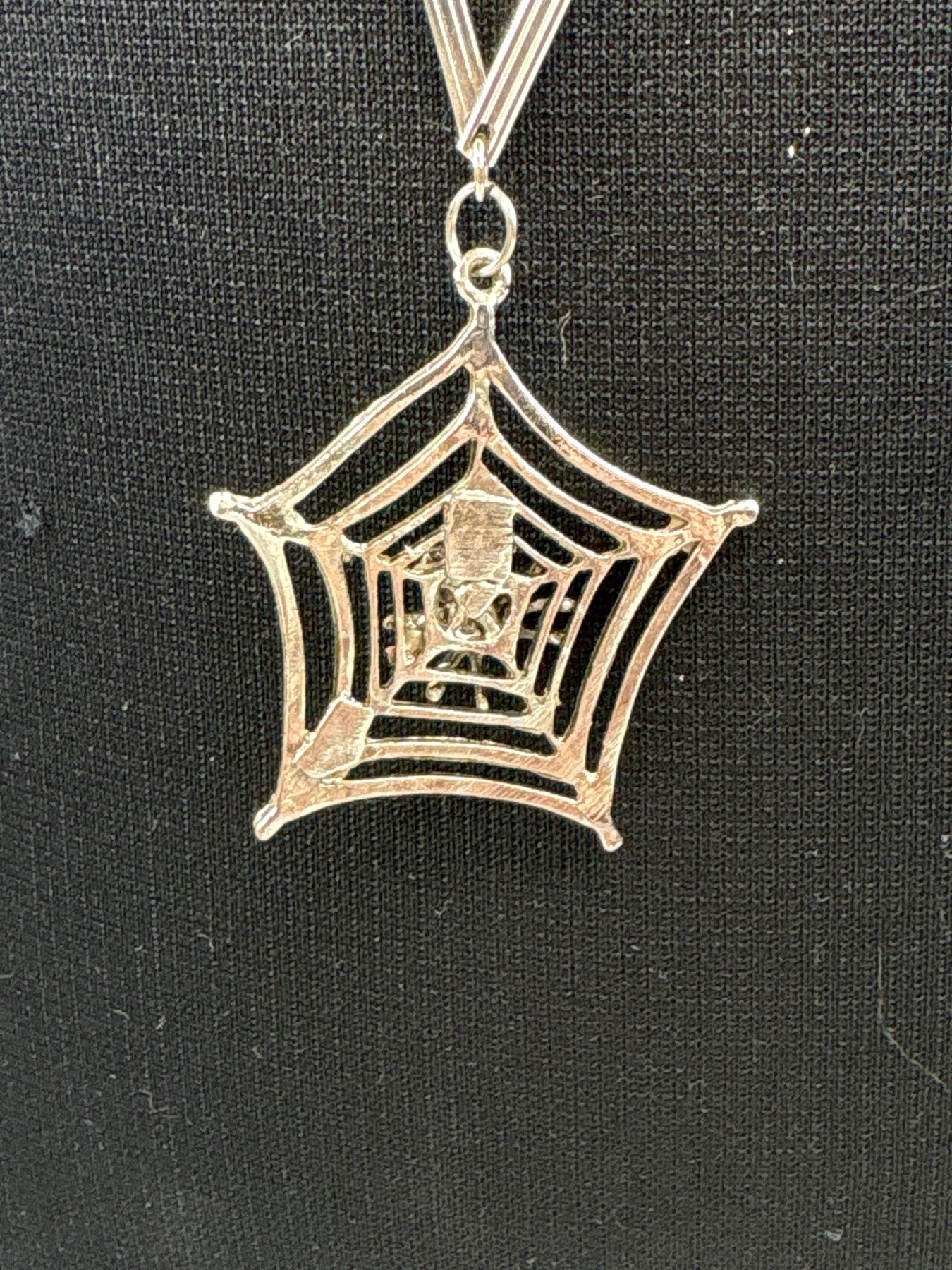 Silver Plated Spider Net Pendant w/ Chain Necklace