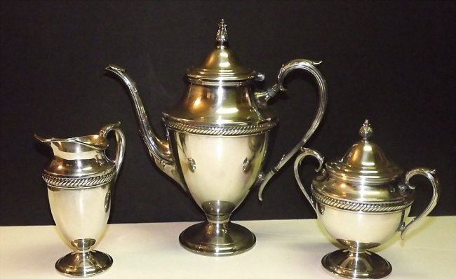 Silver Plated Tea/Coffee Pot, Creamer, and Sugar Bowl