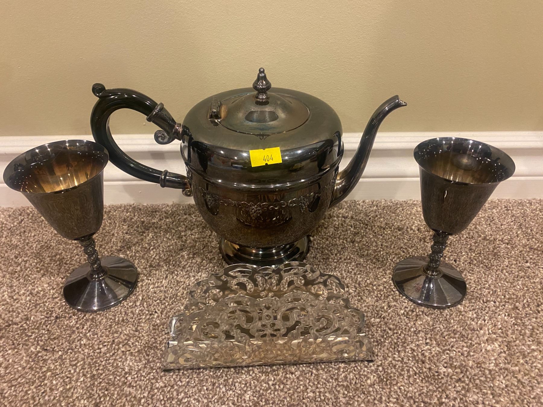 Silver Plates Tea Pot And Matching Goblets