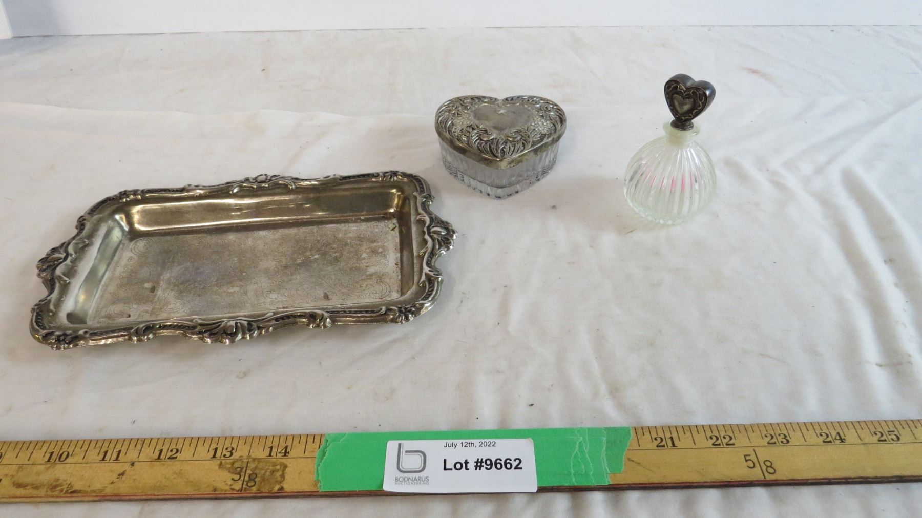 Silver Platter with Glass and silver bottles
