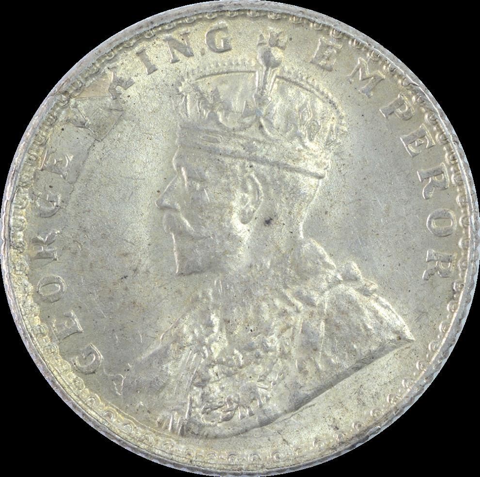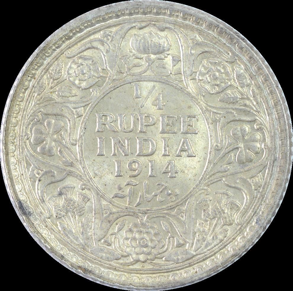 Silver Quarter Rupee Coin of King George V of Bombay Mint of 1914.
