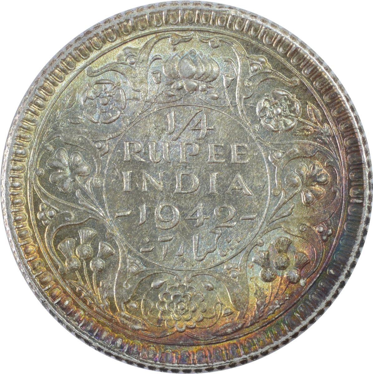 Silver Quarter Rupee Coin of King George VI of 1942.