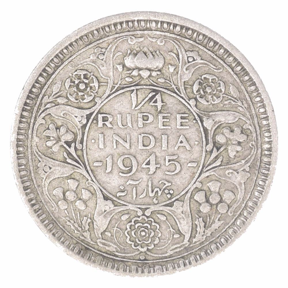 Silver Quarter Rupee Coin of King George VI of Bombay Mint of 1945.