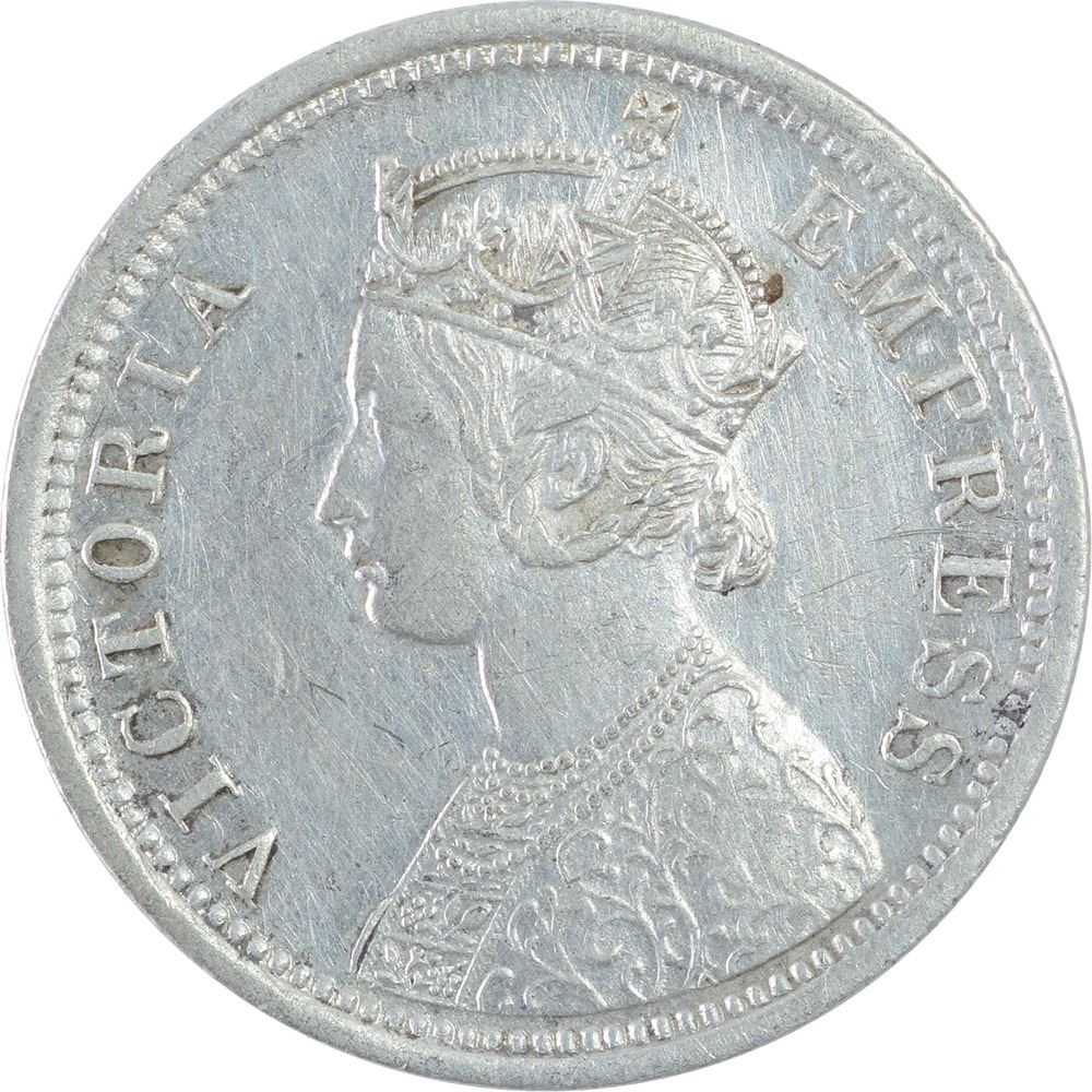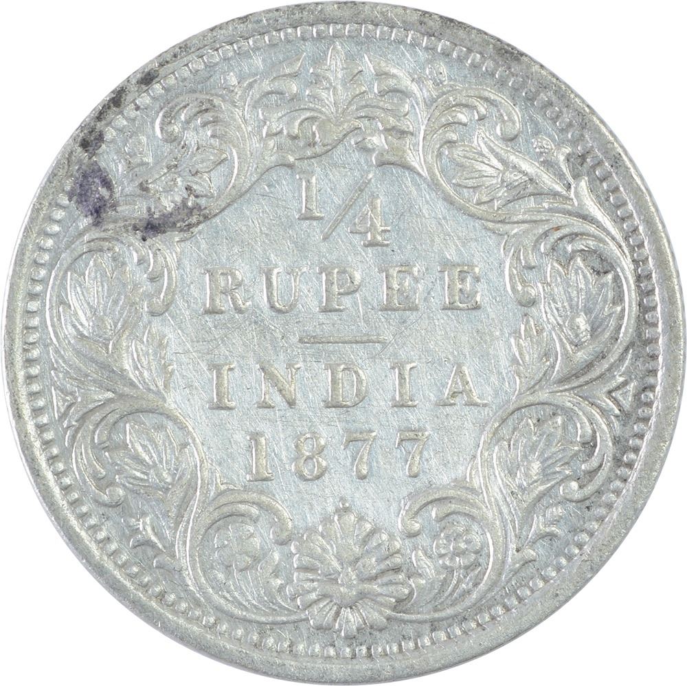 Silver Quarter Rupee Coin of Victoria Empress of 1877.