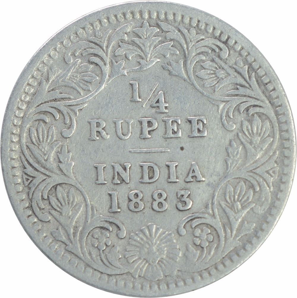 Silver Quarter Rupee Coin of Victoria Empress of Calcutta Mint of 1883.