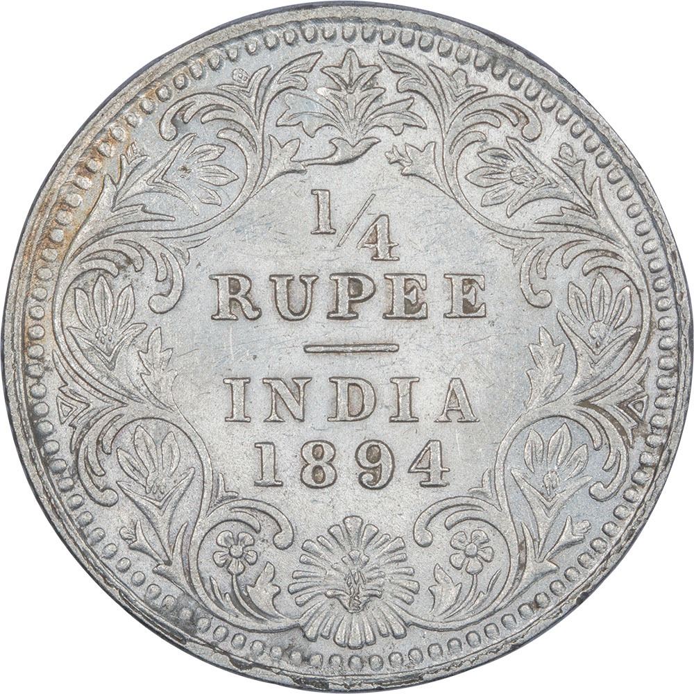 Silver Quarter Rupee Coin of Victoria Empress of Calcutta Mint of 1894.