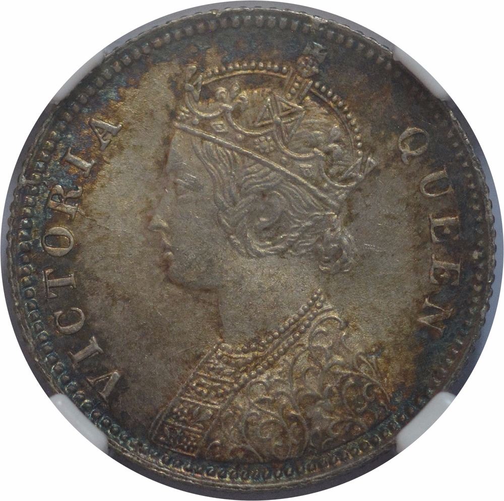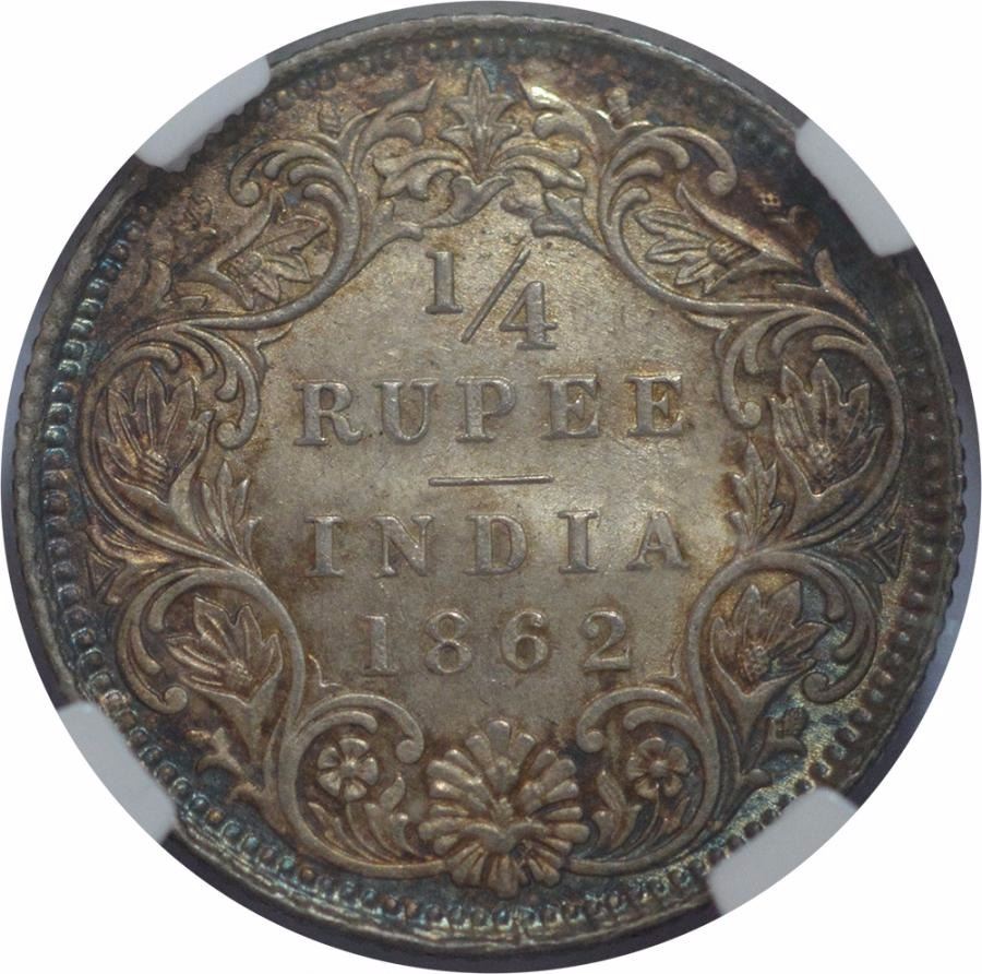 1862, Victoria Queen, Silver 1/4 Rupee, Calcutta Mint, A/I,(PR # 372), graaded slabbed by NGC as MS 63.