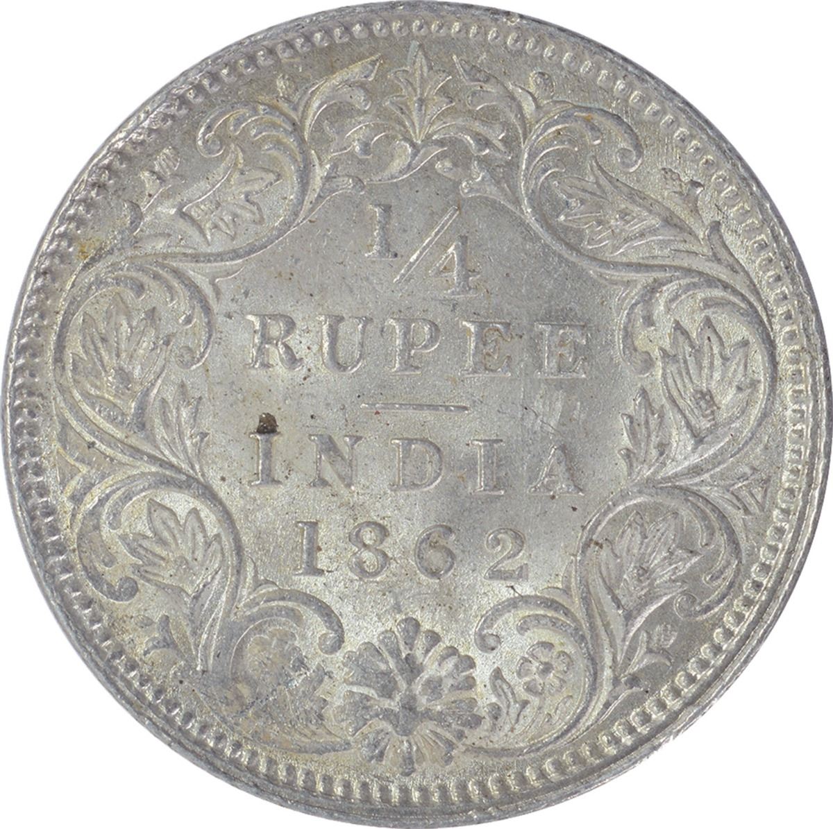 Silver Quarter Rupee Coin of Victoria Queen of Calcutta Mint of 1862.