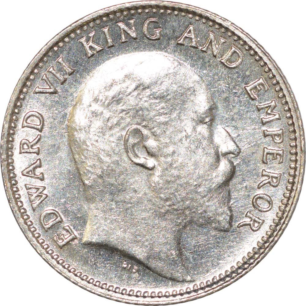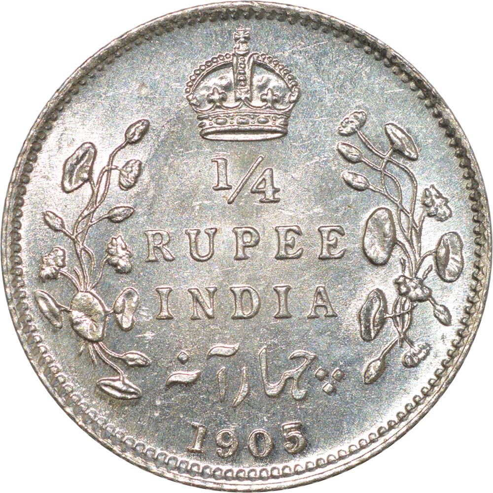 Silver Quarter Rupee of King Edward VII of Calcutta Mint of 1905.