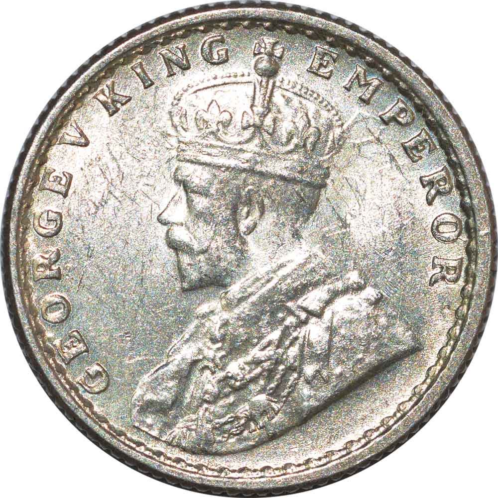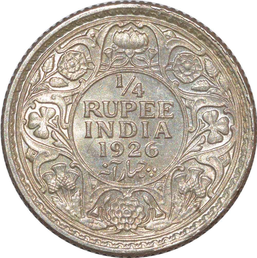 Silver Quarter Rupee of King George V of Calcutta Mint of 1926.