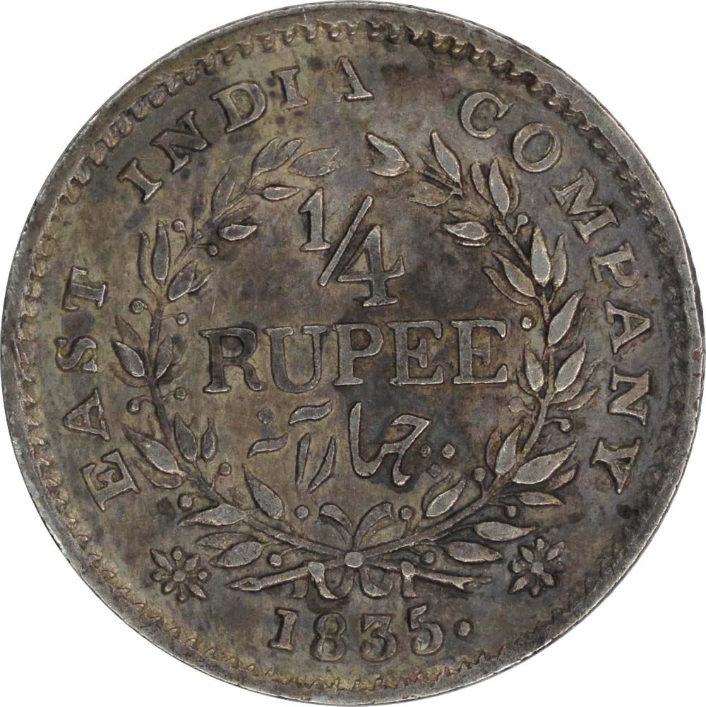 Silver Quarter Rupee of King William IIII of Calcutta Mint of 1835.