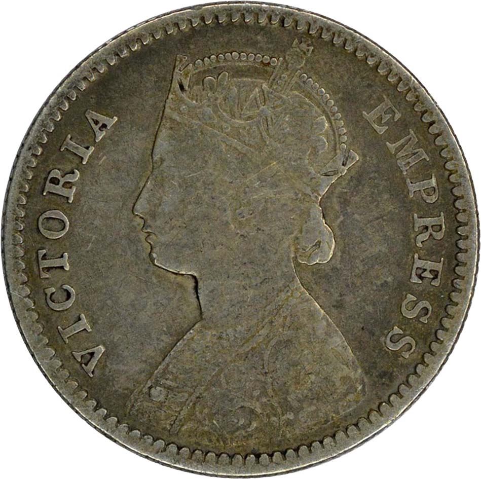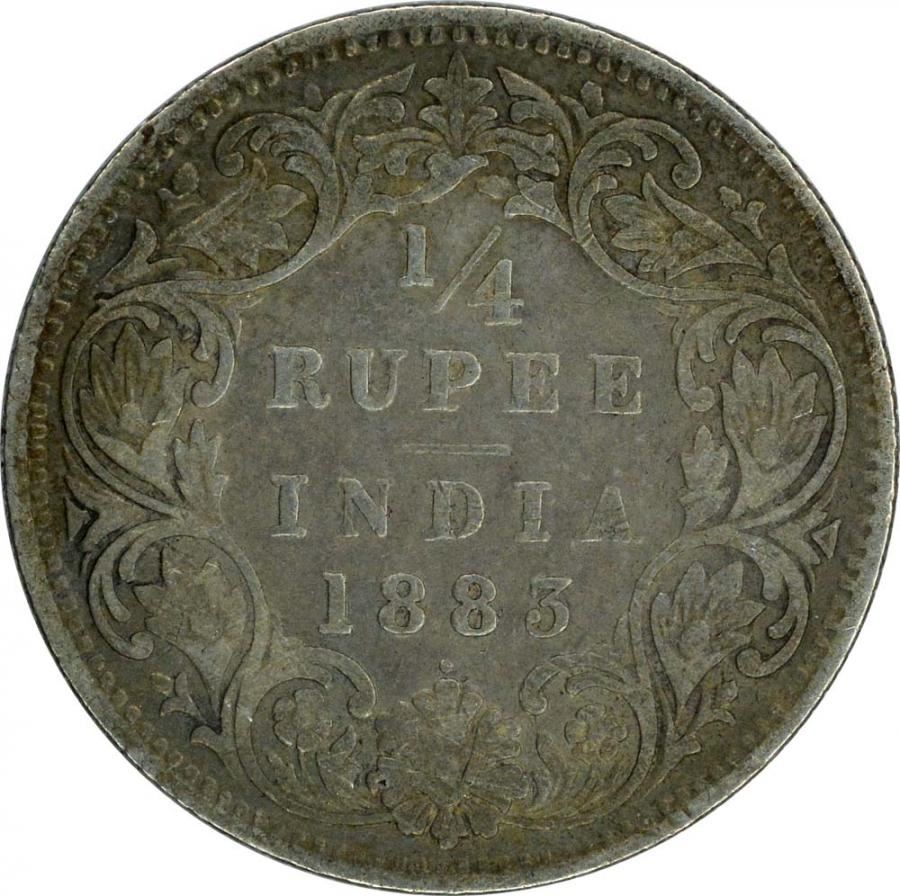 Silver Quarter Rupee of Victoria Empress of Bombay Mint of 1883.