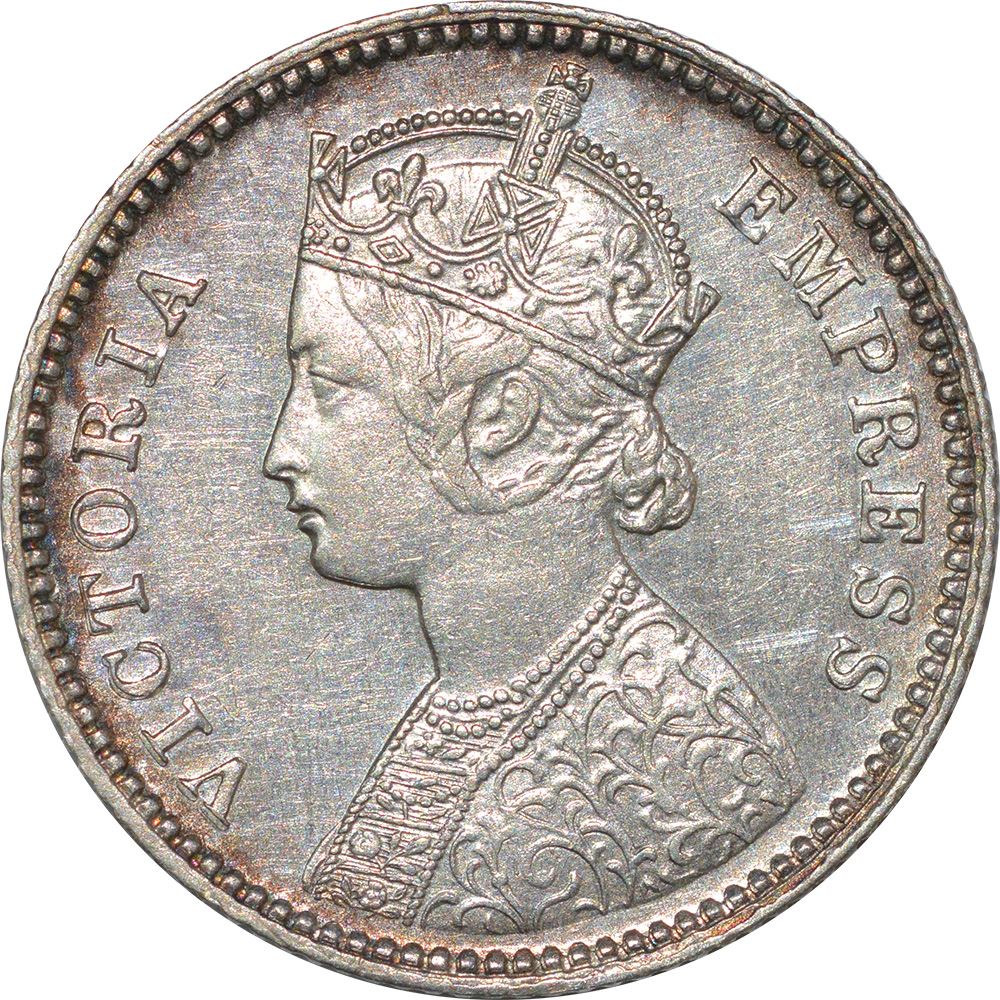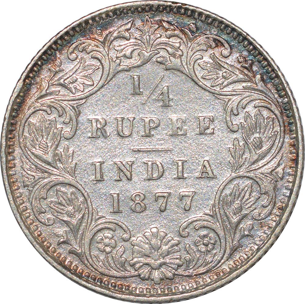 Silver Quarter Rupee of Victoria Empress of Calcutta Mint of 1877.