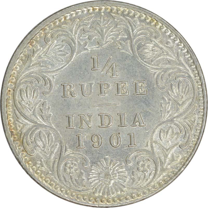 Silver Quarter Rupee of Victoria Empress of Calcutta Mint of 1901.