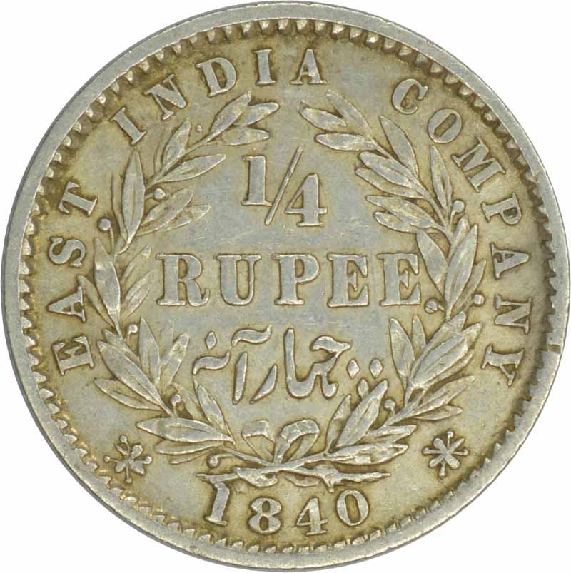 Silver Quarter Rupee of Victoria Queen of 1840.