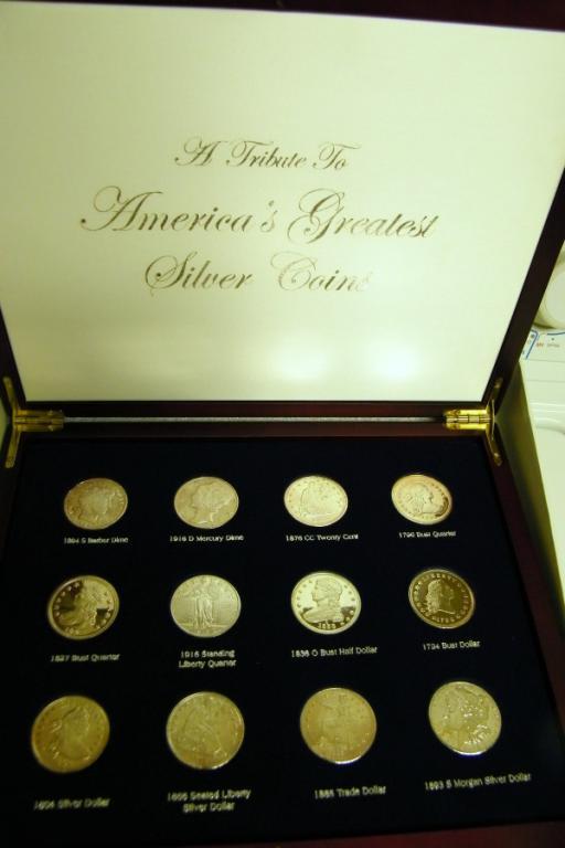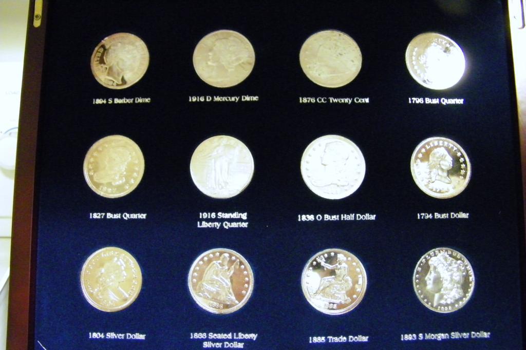 Presented in a beautiful display case are America's greatest Silver Coins Created by The American Historic Society
