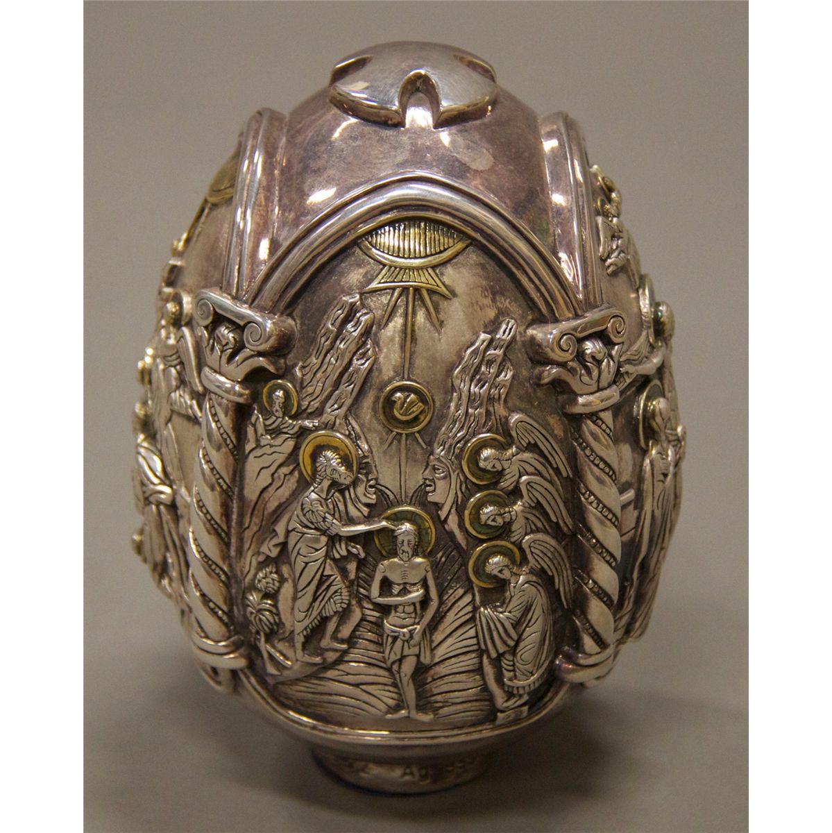 Silver Resurrection Egg (Greece), weighted and not 100% solid. [2.5 (lbs), 6 (in), 4.25 (in)]