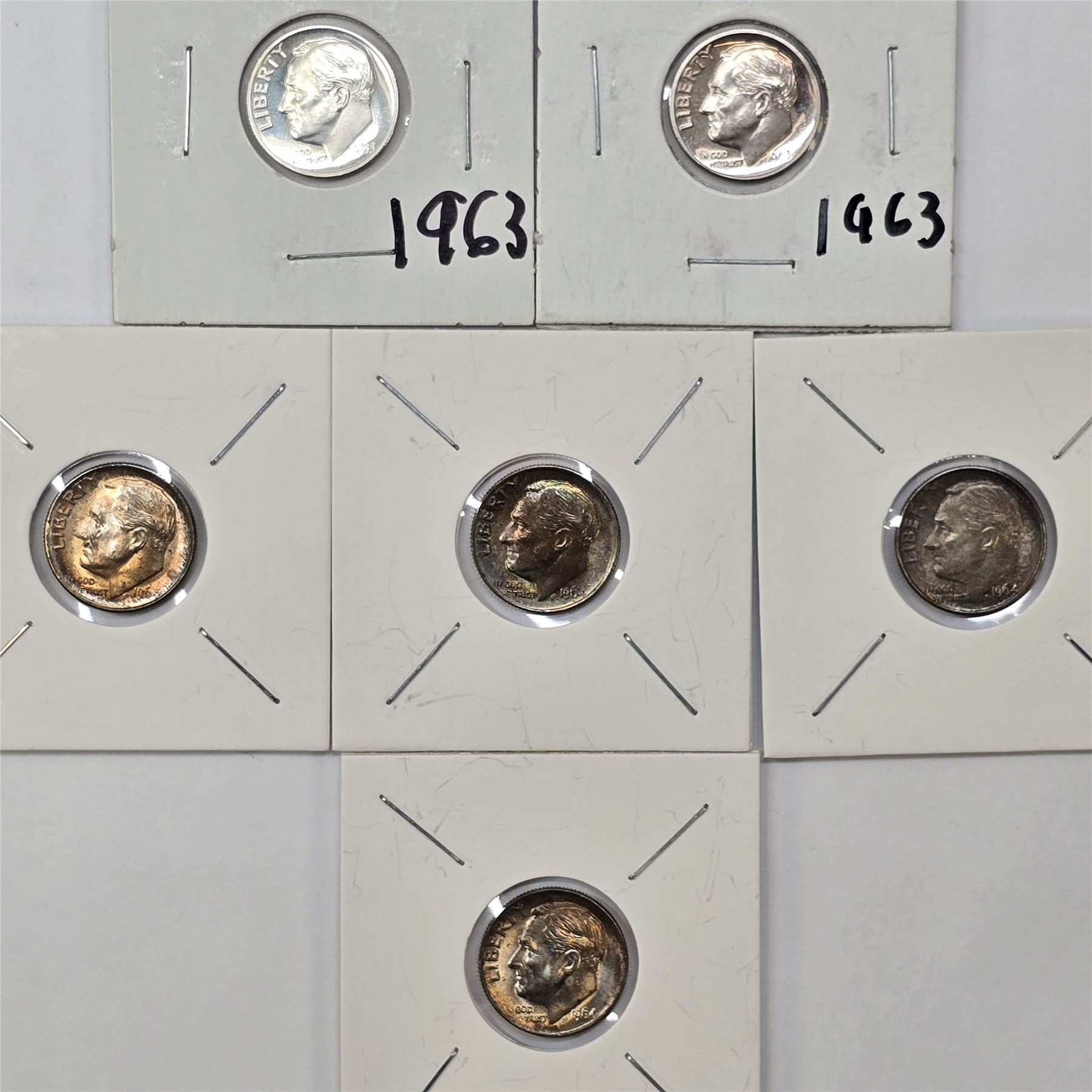 Lot of (6) Silver Roosevelt Dimes. (2) 1963 and (4) 1964. All appear to be in various mint state condition