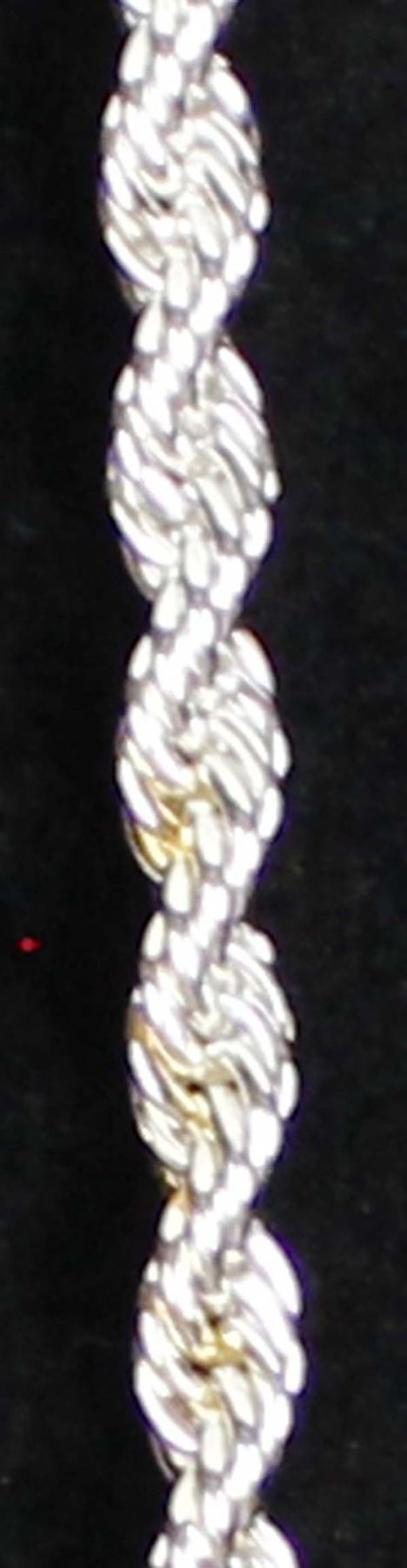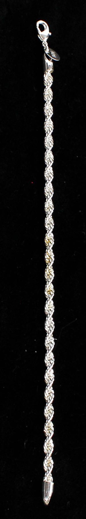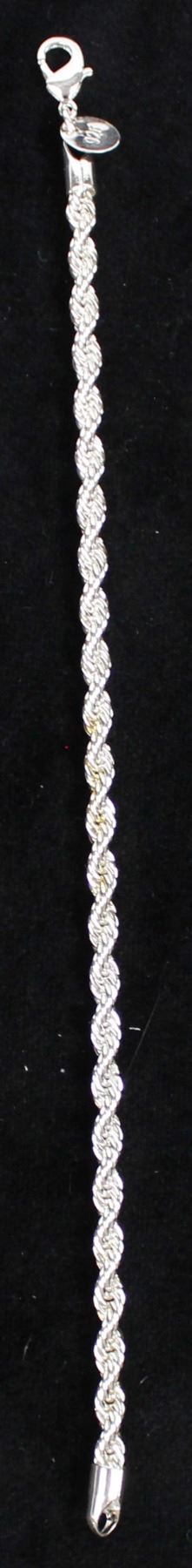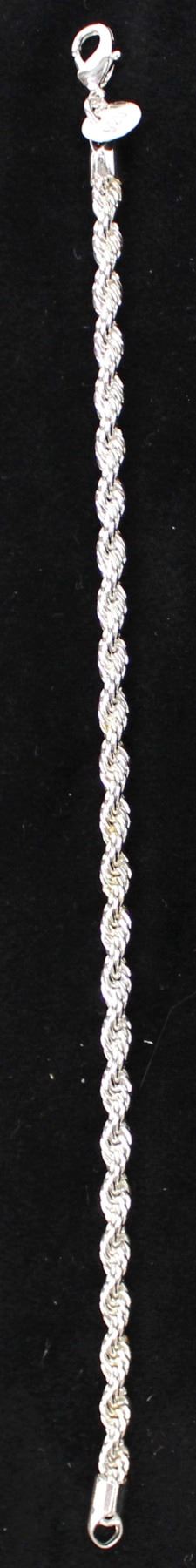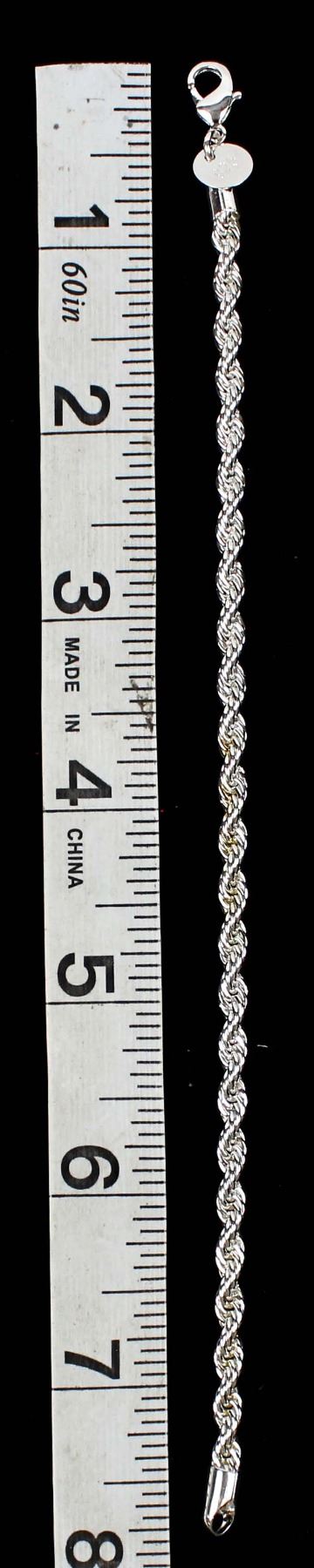Silver Rope Bracelet, measures 7.75''L x 1/8''W, has a small metal tag marked .925, 8 gtw