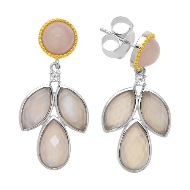 Assembled Rainbow Moonstone and Rose Quartz Doublet: Two pear shaped checkerboard cut 12 x 7mm and four marquise shaped checkerboard cut 12 x 6mm