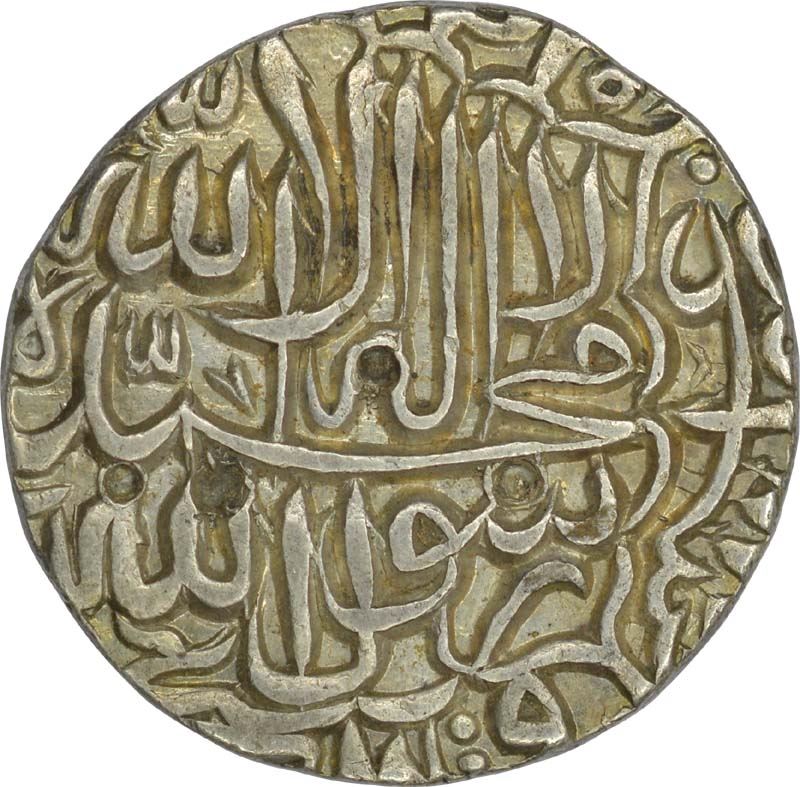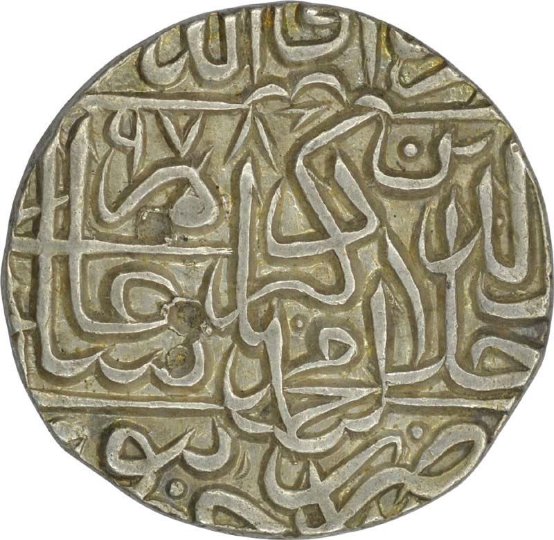 Akbar, Jaunpur, Silver Rupee, AH 978, Kalima Type, Obv: kalima shahada, Rev: jalal-ud-din muhammad akbar badshah ghazi, 11.45g, 26.38mm,(KM # 80.10), about extremely fine.