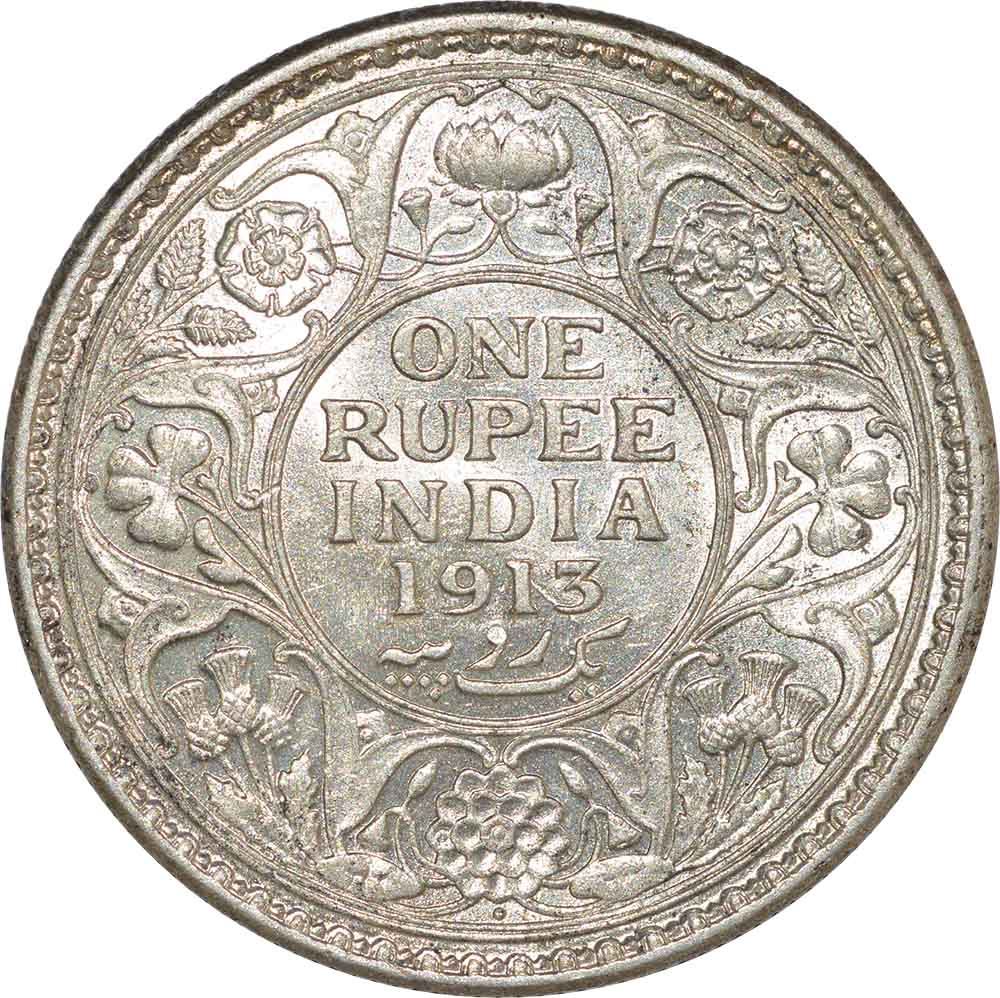 Silver Rupee of King George V of Bombay Mint of 1913.
