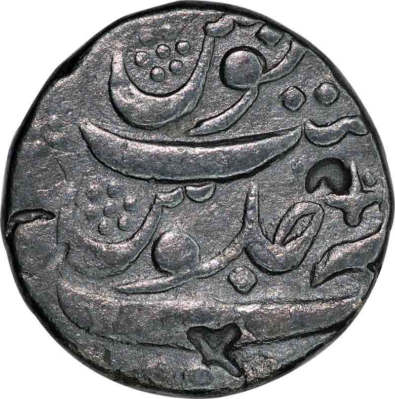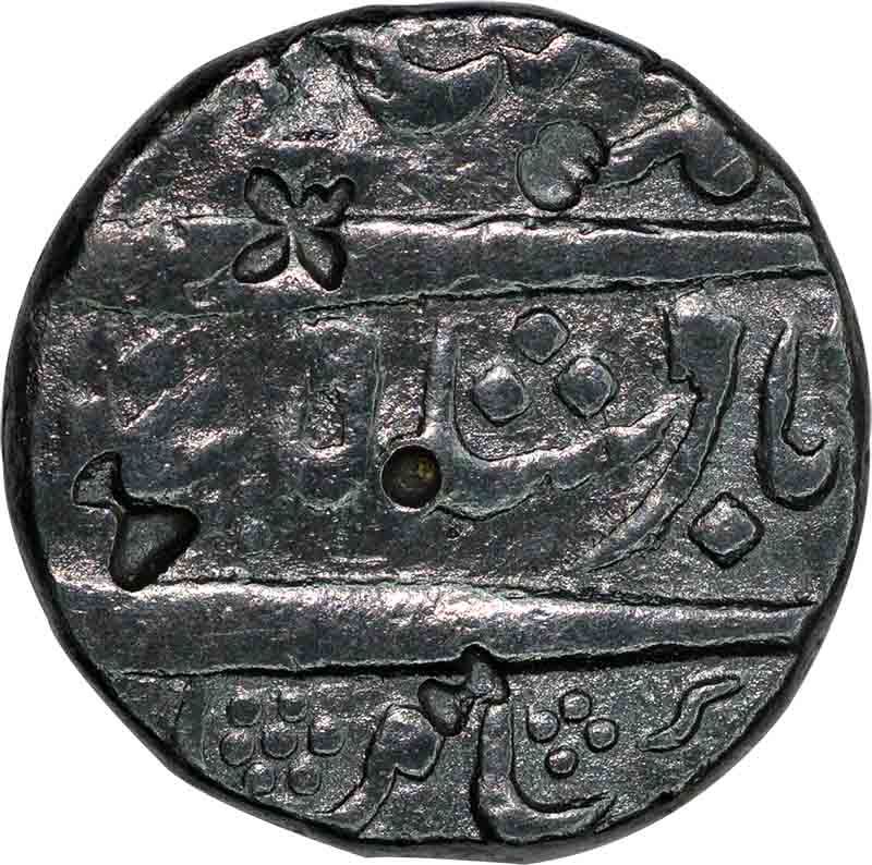Nawabs of Arcot, Sa’adat-ullah Khan I,Silver Rupee,In the name of Muhmmad Shah, Obv: mohmmad shah badshah ghazi sikka mubarad,Rev:zarb arcot sanah 6 “flower” manus maimanat julus, 11.34g, 21.36mm,(Mitch # 986-987), about very fine.