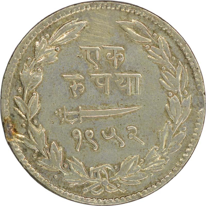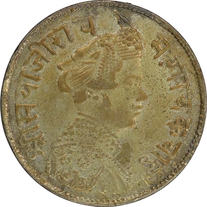 Baroda, Sayaji Rao, Baroda III, Silver Rupee, VS 1952, Small Head, Obv: bust of king right, wearing jeweled turban, nagari legend around "sri sayaji rao-nagaekwad", Rev: nagari denomination in two lines, ej-rupaya, sword and vs date, 11.35g, 27.82mm, VS year Unlisted,about very fine.