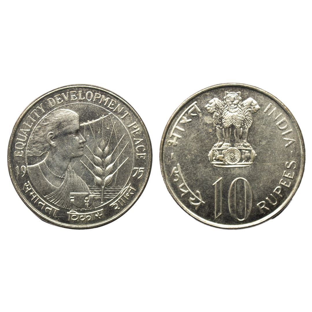 Silver Rupees 10, 1975, Equality Development and Peace. Uncirculated.