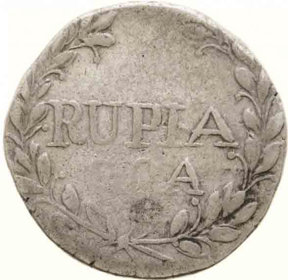 India-Portuguese, Goa, Pedro V, SilverRupia, Obv:head right, Rev:value within sprays,(KM# 279),11.79g,24.71mm,about very fine, Very Rare.