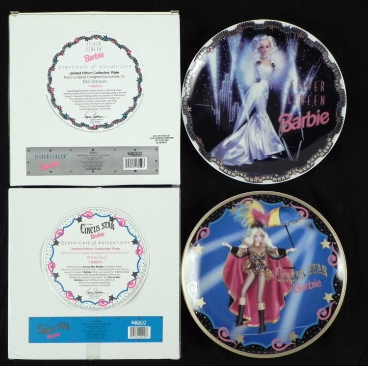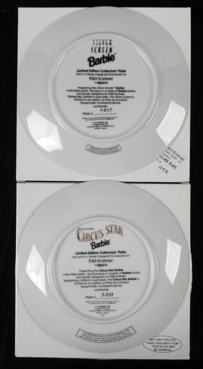 Silver Screen & Circus Star Barbie LTD. Ed. Plate Mattel MIB * Included plates:Circus Star BarbieSilver Screen * Detail: Mint in boxSold by FAO Schwartz *