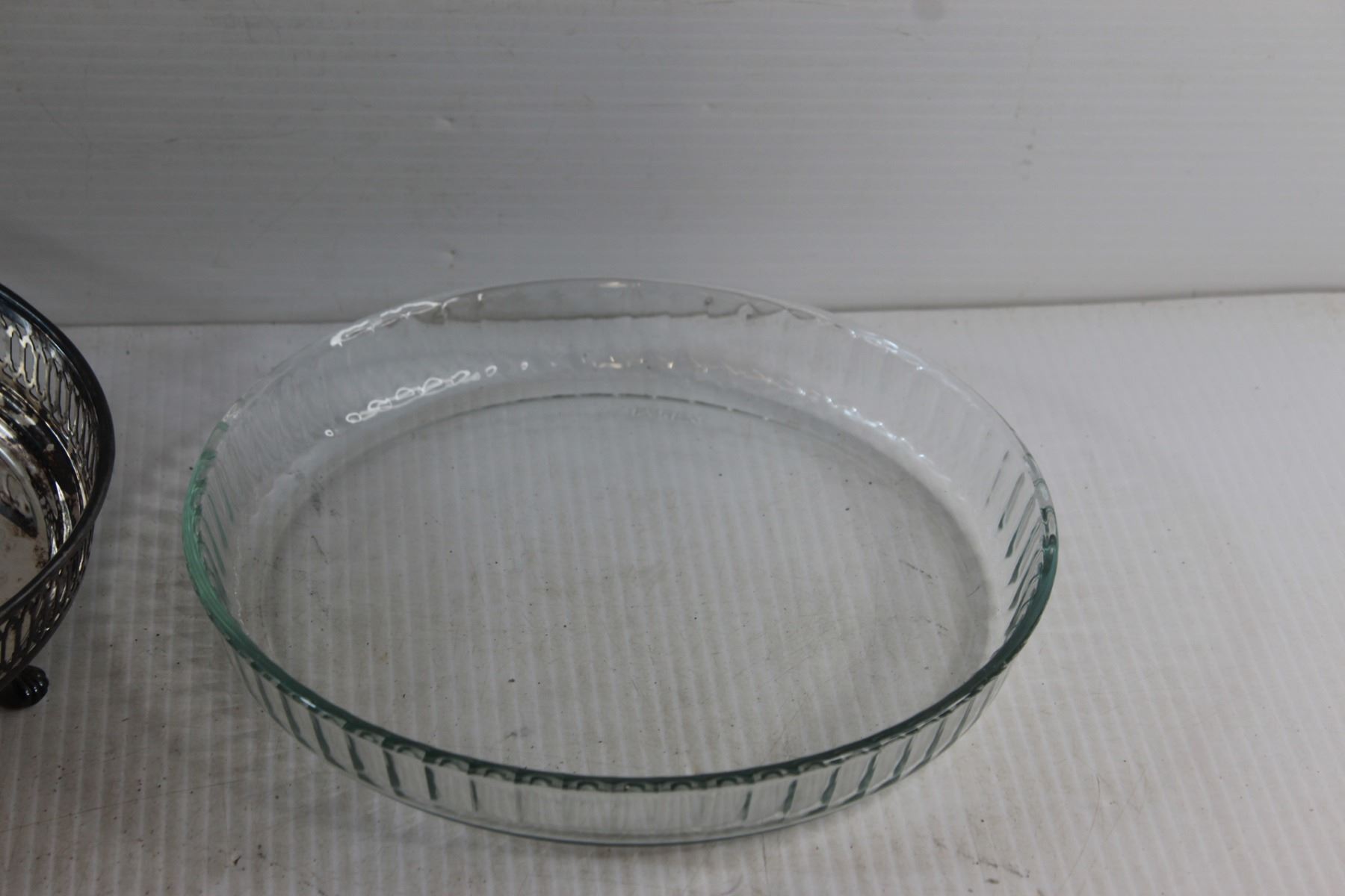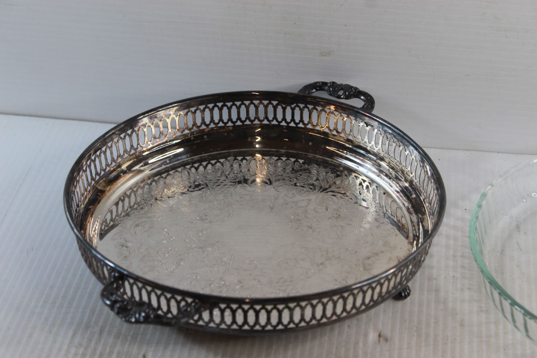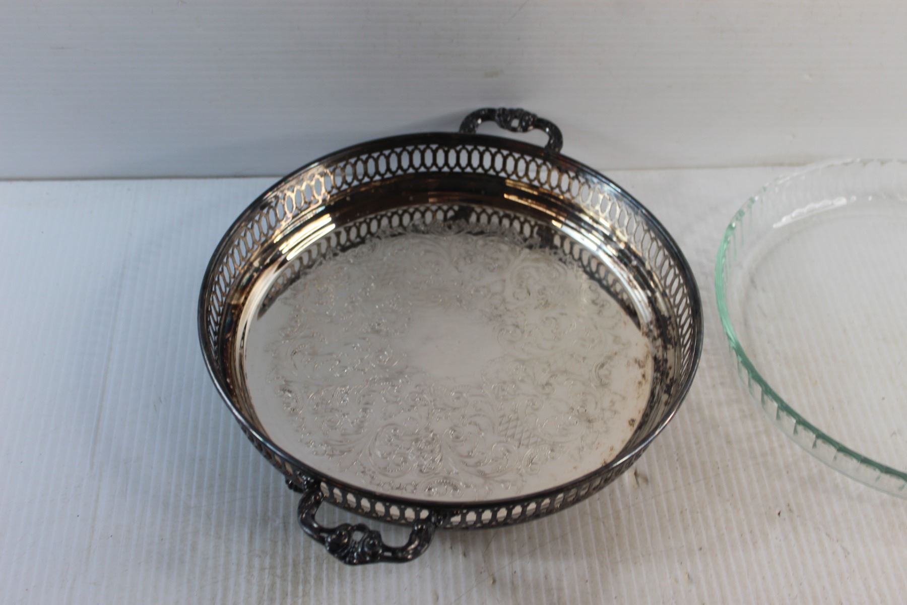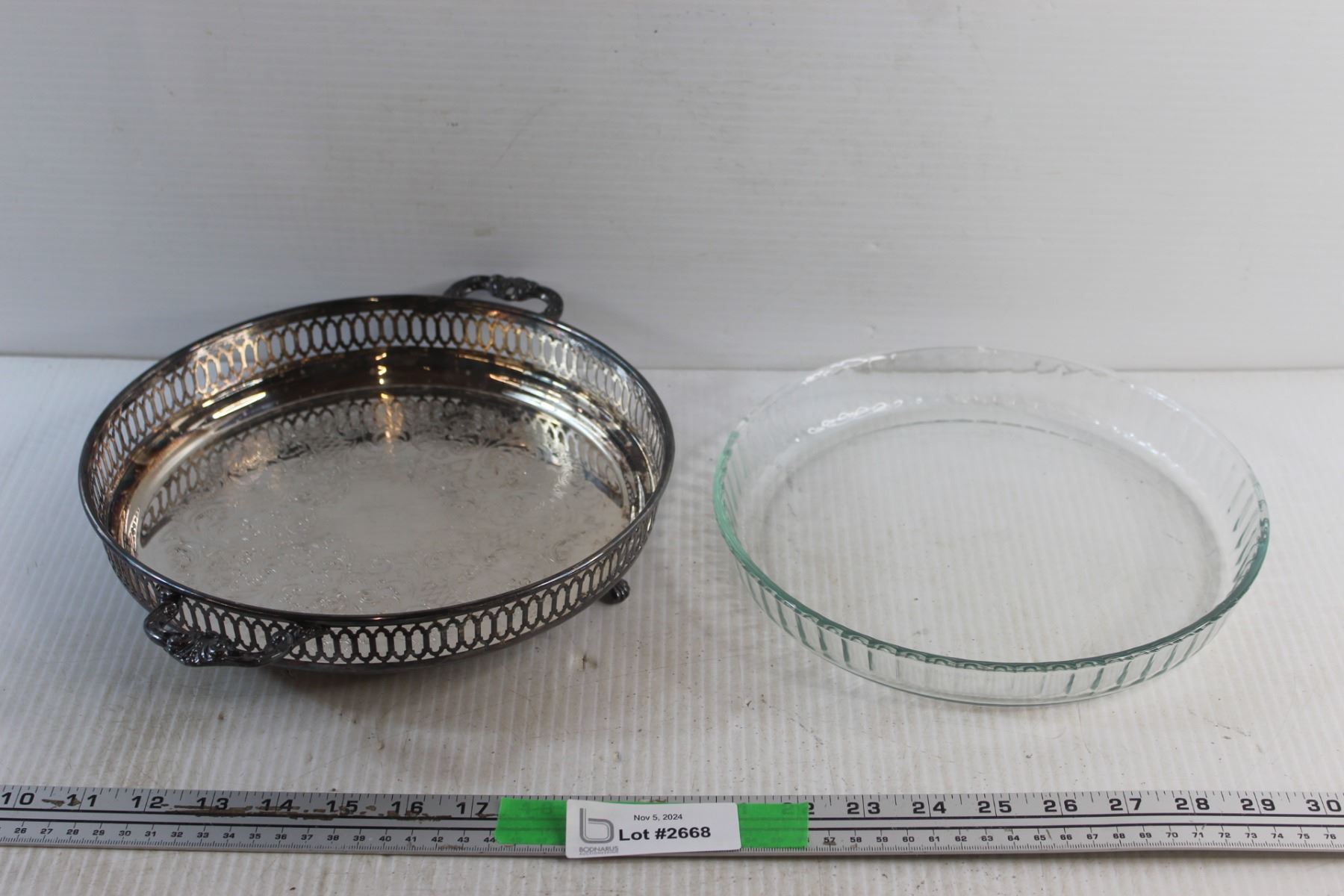 Silver Serving Tray and Pyrex Pie Dish 10''