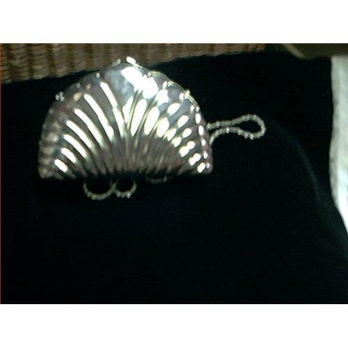 <tr><td>Title:Silver Shell Metal Hand Bag by Delill</td></tr>