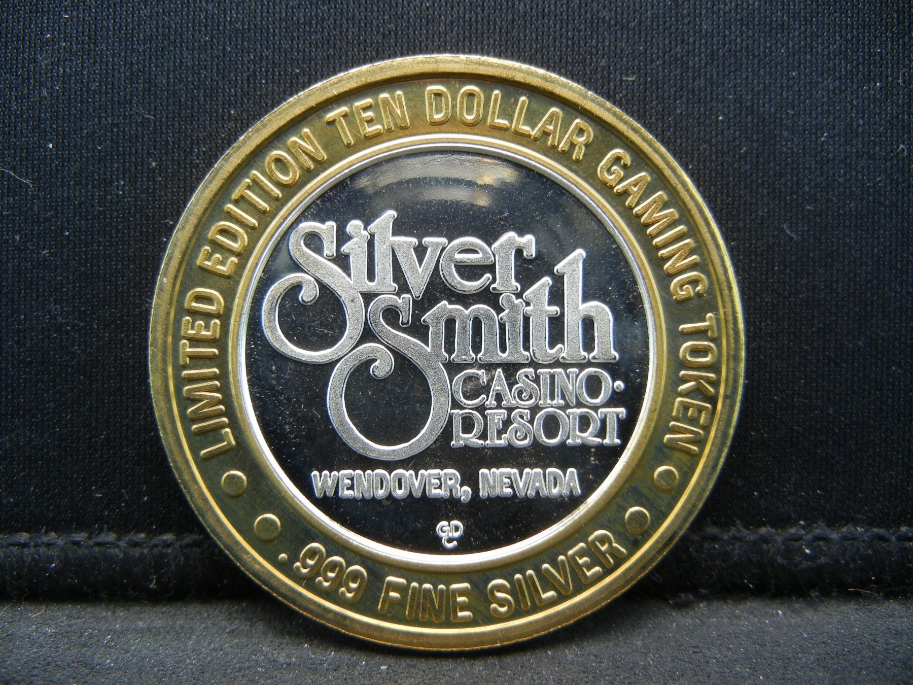 Silver Smith Wendover Nevada $10 (.999) silver gambling token. In capsule.