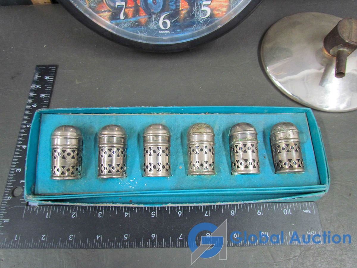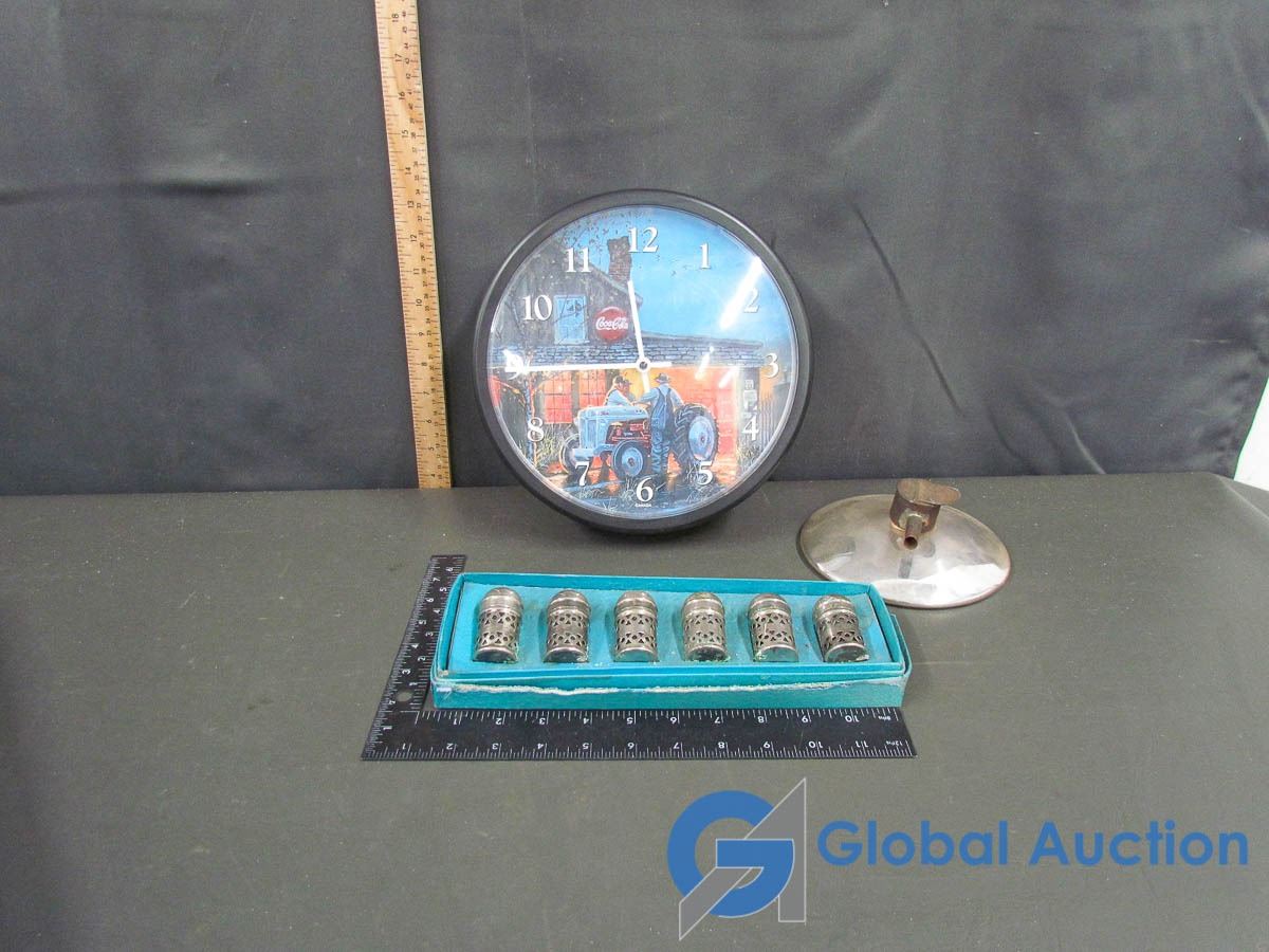 Silver Spice Set, Coca-Cola Wall Clock, etc