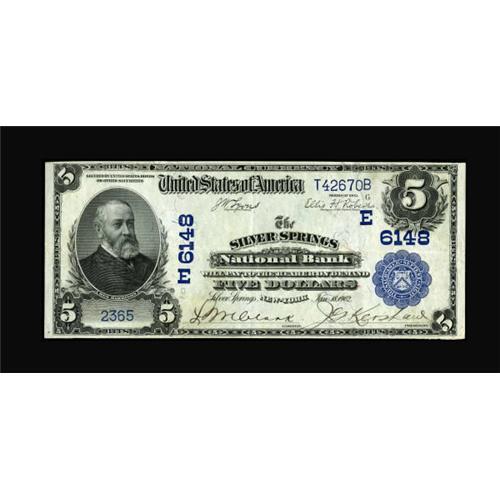 <B>Silver Springs, NY</B></I> - $5 1902 Plain Back Fr. 598 <B>The Silver Springs NB</B></I> Ch. # (E)6148<BR> A nice pen signed <B>Extremely Fine </B></I>Blue Seal which perfectly complements the Red Seal offered above. <BR><I>From The Thomas A. Bergin Collection</B></I><BR><BR><b>Shipping:</b> Coins & Currency (<a target="_blank" href="http://www.heritageauctions.com/common/shipping.php">view shipping information</a>)