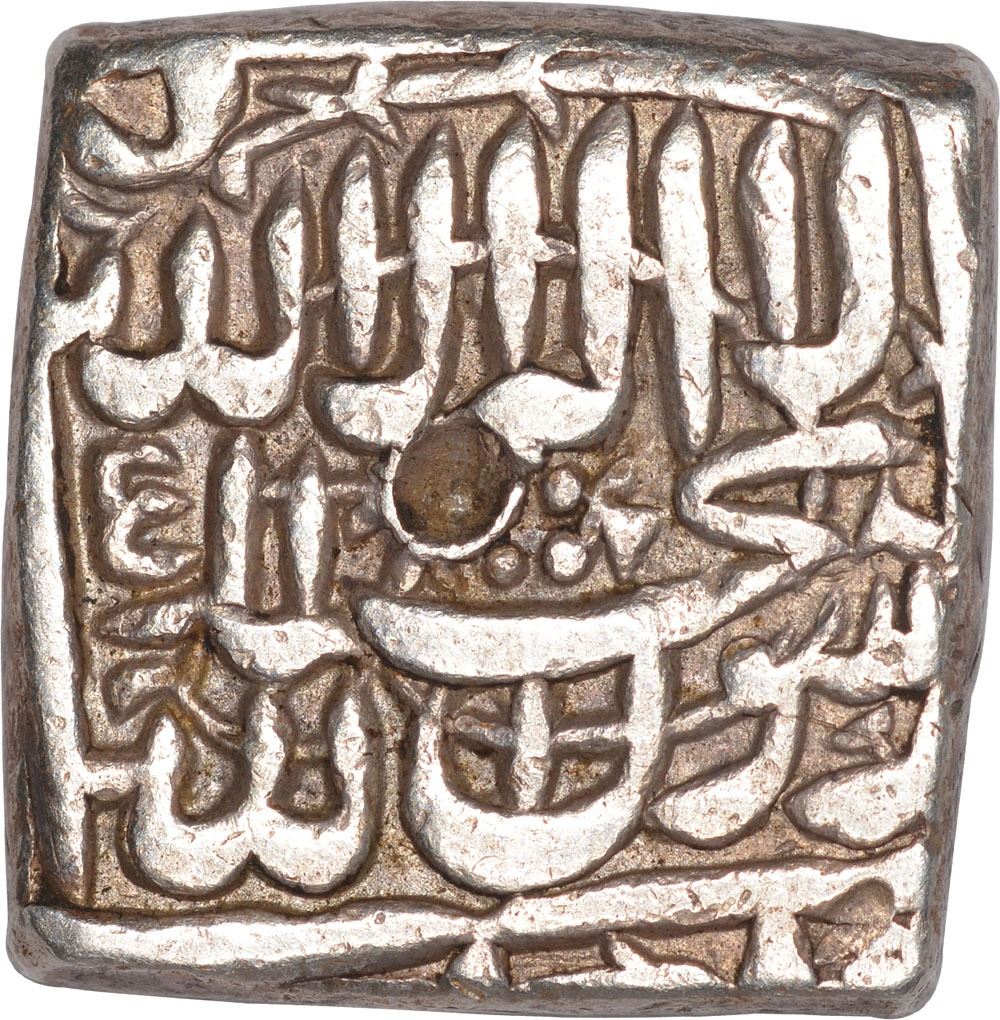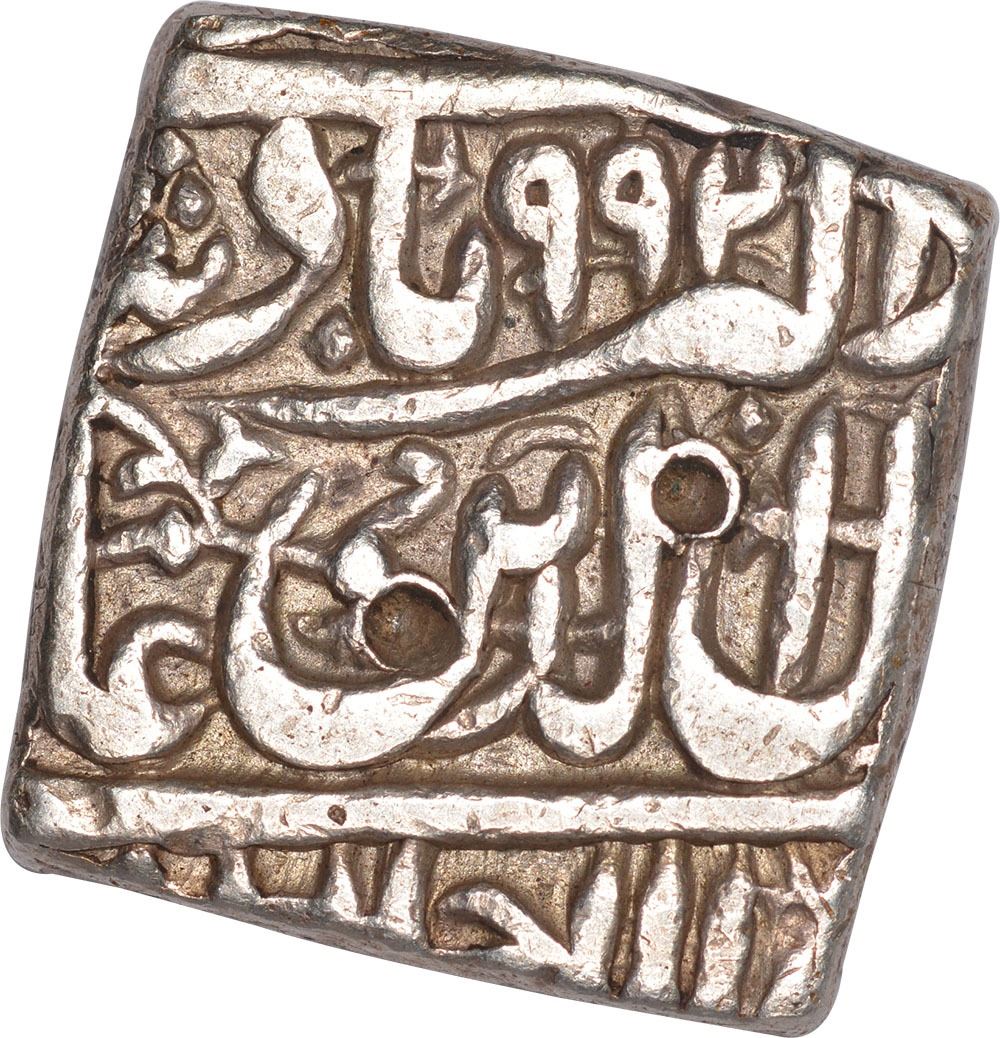 Silver Square One Rupee Coin of Akbar of Akbarabad Mint.