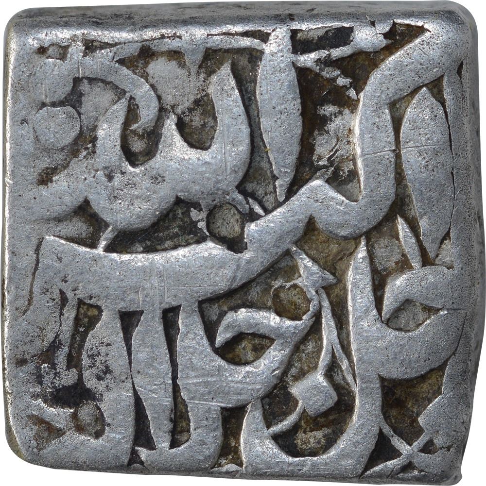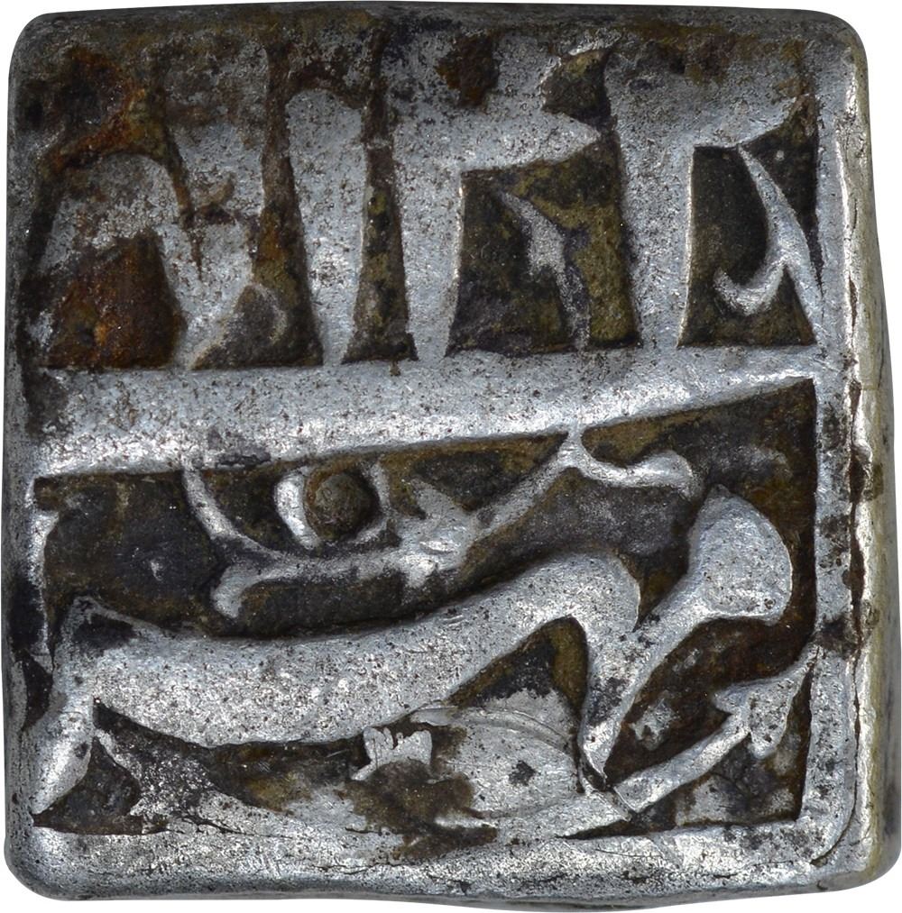 Silver Square One Rupee Coin of Akbar of Mihr Month.