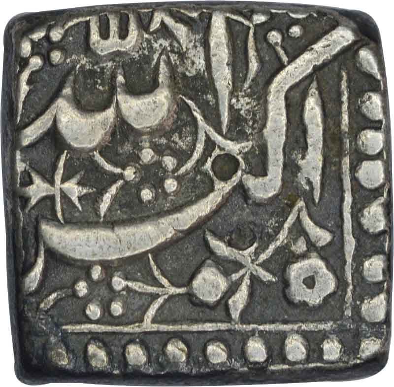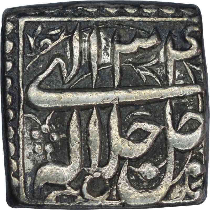 Akbar, Silver Square Rupee, RY 34, Obv: allahu akbar, Rev: jalalahu ialhi date, 11.45g, 17.30 x 17.16mm, about very fine, Scarce.