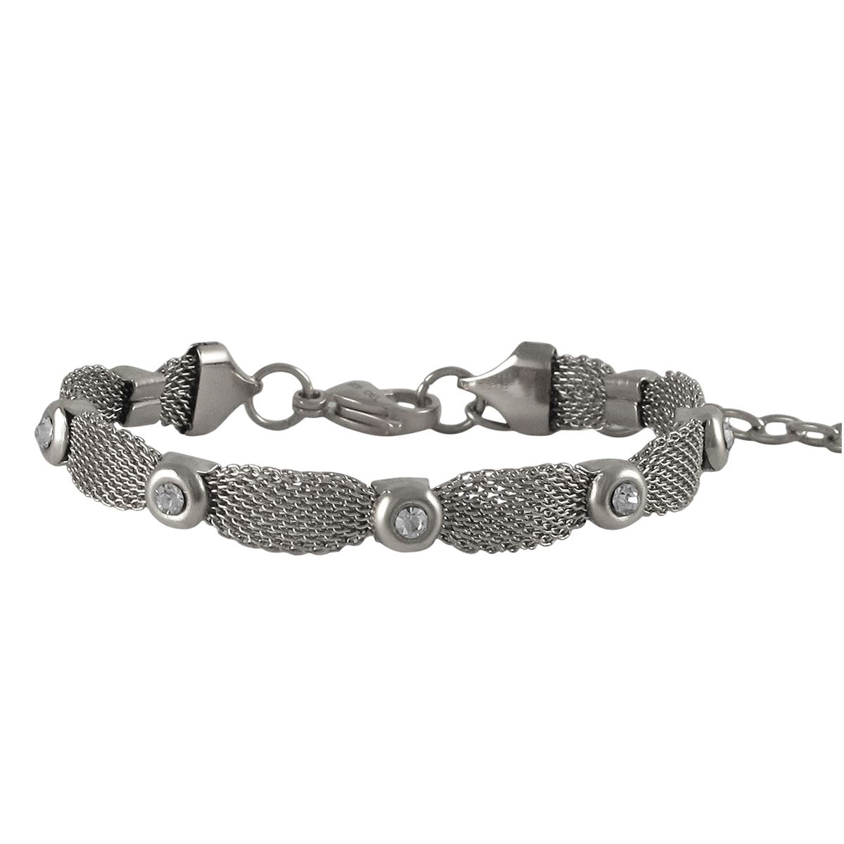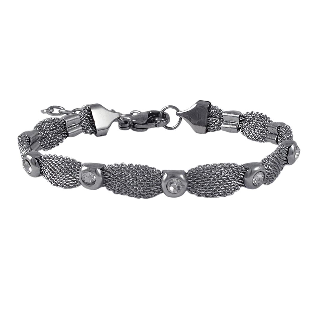 Silver Stainless Steel Mesh With White Crystal Bracelet-7" 1"