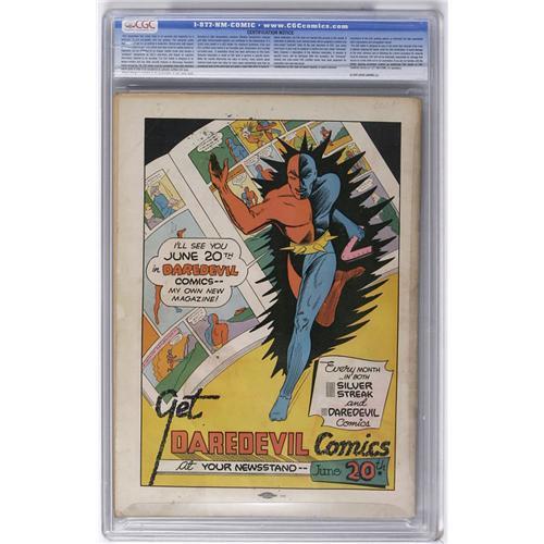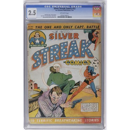<B>Silver Streak Comics #12 (Lev Gleason, 1941) CGC GD+ 2.5 Off-white pages.</B></I> Featuring Daredevil. Don Rico cover. Rico, Jack Cole, Bernard Baily, and Dick Briefer art. Overstreet 2006 GD 2.0 value = $87. CGC census 2/06: 1 in 2.5, none higher. <I>From the Collection of Harold Curtis.</B></I>