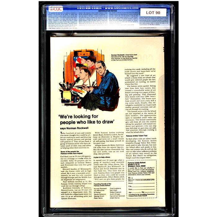 The Auctioneer has reserved the right to reject any and all bids, and to bid at the auction. Auctioneers Auctions are not on approval. Auctioneer does not allow certified material to be returned because of possible differences of opinion with respect to the grade offered by any third party organization, dealer, or service. Absolutely no guarantee of grade is offered for un-certified property sold and subsequently submitted to a third-party grading service. There will be no exceptions to this policy. Under extremely limited circumstances, (e.g. gross cataloging error) a purchaser, who did not bid from the floor, may request Auctioneer to evaluate voiding a sale; such request must be made in writing detailing the alleged gross error, and submission of the lot to the Auctioneer must be pre-approved by the Auctioneer. Bidder must notify Auctioneer in writing of such request within three (3) days of the non-floor bidder receipt of the lot. Any lot that is to be evaluated must be in our offices within 30 days after Auction. Grading does not qualify for this evaluation process nor do such complaints constitute a basis to challenge the authenticity of a lot. AFTER THAT 30-DAY PERIOD, NO LOTS MAY BE RETURNED FOR REASONS OTHER THAN AUTHENTICITY. Lots returned must be housed intact in the original holder. No lots purchased by floor Bidders may be returned (including those Bidders acting as agents for others). Late remittance for purchases may be considered just cause to revoke all return privileges. B: Auctions conducted solely on the Internet have a THREE (3) DAY RETURN POLICY: Lots paid for within seven days of the Auction closing are sold with a three (3) day return privilege. You may return lots under the following conditions: Within three days of receipt of the lot, you must first notify Auctioneer by contacting Client Service by phone (314-680-8599) or e-mail (moundcityauctions@gmail.com), and immediately mail the lot(s) fully insured to the attention of Returns, Mound City Auctions 1081 Teson Rd. Hazelwood, MO. 63042. Lots must be housed intact in their original holder and in their original condition. You are responsible for the insured, safe delivery of any lots. Auctioneer will not be responsible for lots returned in non-registered mail or lots returned without prior authorization per section B. A non-negotiable return fee of 5% of the purchase price ($10 per lot minimum) will be deducted from the refund for each returned lot or billed directly. Postage and handling fees are not refunded. After the three-day period (from receipt), no items may be returned for any reason. Late remittance for purchases revokes all Return-Restock privileges. C: Bidders who have inspected the lots prior to the auction will not be granted any return privileges. D: Comic books sold referencing a third-party grading service are sold “as is” without any express or implied warranty. Certain warranties may be available from the grading services and the Bidder is referred to them for further details: Certified Guaranty Company, LLC. (CGC), P.O. Box 4738, Sarasota, FL 34230. E: Bidders who intend to challenge authenticity or provenance of a lot must notify Auctioneer in writing within thirty (30) days of the Auctions conclusion. In the event Auctioneer cannot deliver the lot or subsequently it is established that the lot lacks title, provenance, authenticity, or other transfer or condition issue is claimed, Auctioneer's liability shall be limited to rescission of sale and refund of purchase price; in no case shall Auctioneer's maximum liability exceed the high bid on that lot, which bid shall be deemed for all purposes the value of the lot. After one year has elapsed, Auctioneer's maximum liability shall be limited to any commissions and fees Auctioneer earned on that lot. F: All comics are guaranteed genuine, but are not guaranteed as to grade, since grading is a matter of opinion, an art and not a science, and therefore the opinion rendered by the Auctioneer or any third party grading service may not agree with the opinion of others (including trained experts), and the same expert may not grade the same item with the same grade at two different times. G: Since we cannot examine encapsulated comics, they are sold “as is”without our grading opinion, and may not be returned for any reason. Auctioneer shall not be liable for any patent or latent defect or controversy pertaining to or arising from any encapsulated collectible. In any such instance, purchaser's remedy, if any, shall be solely against the service certifying the collectible. H: Due to changing grading standards over time, differing interpretations, and to possible mishandling of items by subsequent owners, Auctioneer reserves the right to grade items differently than shown on certificates from any grading service that accompany the items. Auctioneer also reserves the right to grade items differently than the grades shown in the prior catalog should such items be reconsigned to any future auction. I: Although consensus grading is employed by most grading services, it should be noted as aforesaid that grading is not an exact science. In fact, it is entirely possible that if a lot is broken out of a plastic holder and resubmitted to another grading service or even to the same service, the lot could come back with a different grade assigned. J: Certification does not guarantee protection against the normal risks associated with potentially volatile markets. The degree of liquidity for certified collectibles will vary according to general market conditions and the particular lot involved. For some lots there may be no active market at all at certain points in time."