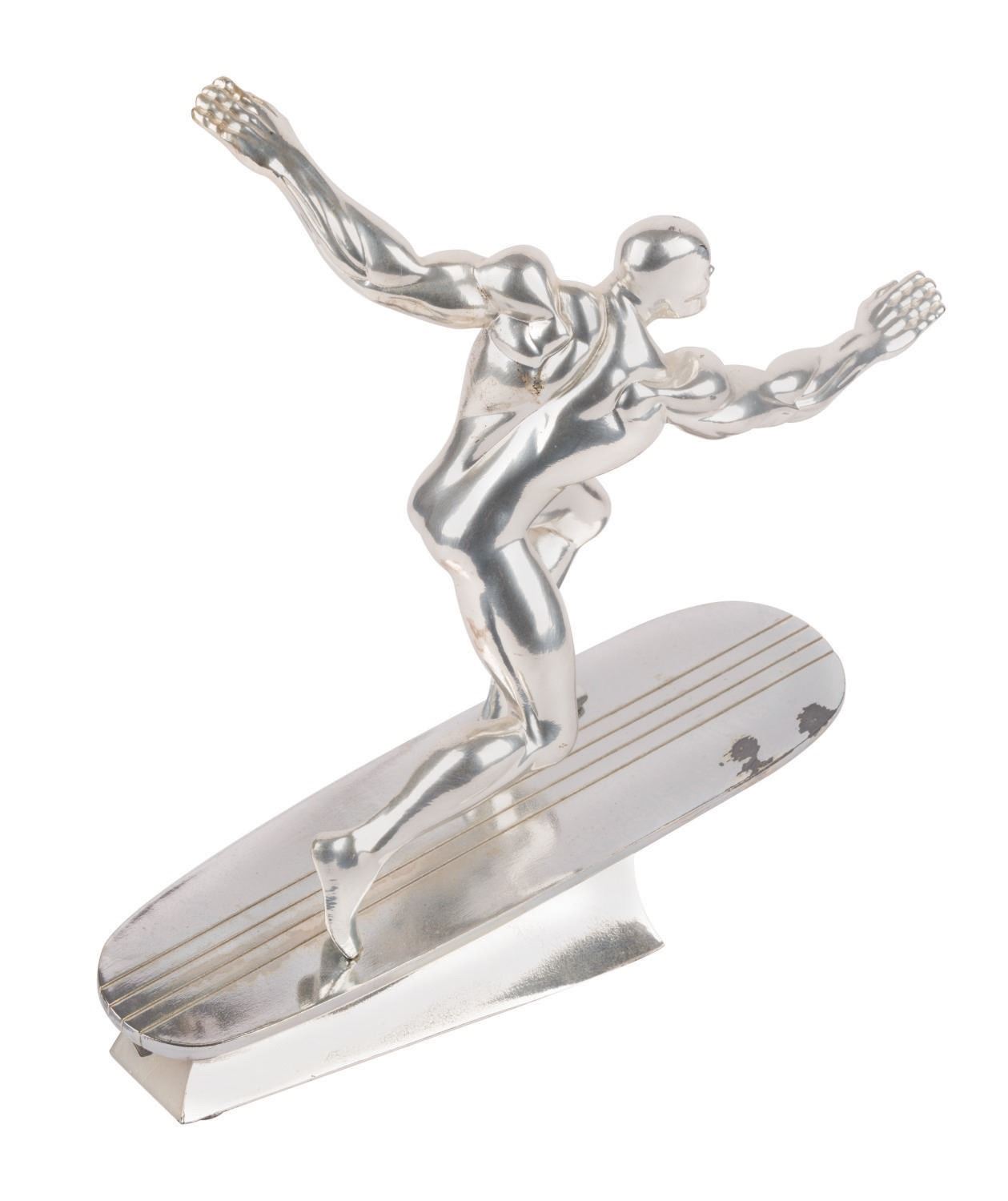 (Marvel, 1996) A limited edition figure commemorating the 30th anniversary of the Silver Surfer. The herald of Galactus was sculpted by Dene Musson of Synapse and made of cold-cast porcelain, solid pewter, and hand-finished silver. Measuring 10.25" tall and 10.25" long, the cosmic figure atop his board is numbered "958/1800" and is in overall very good condition.