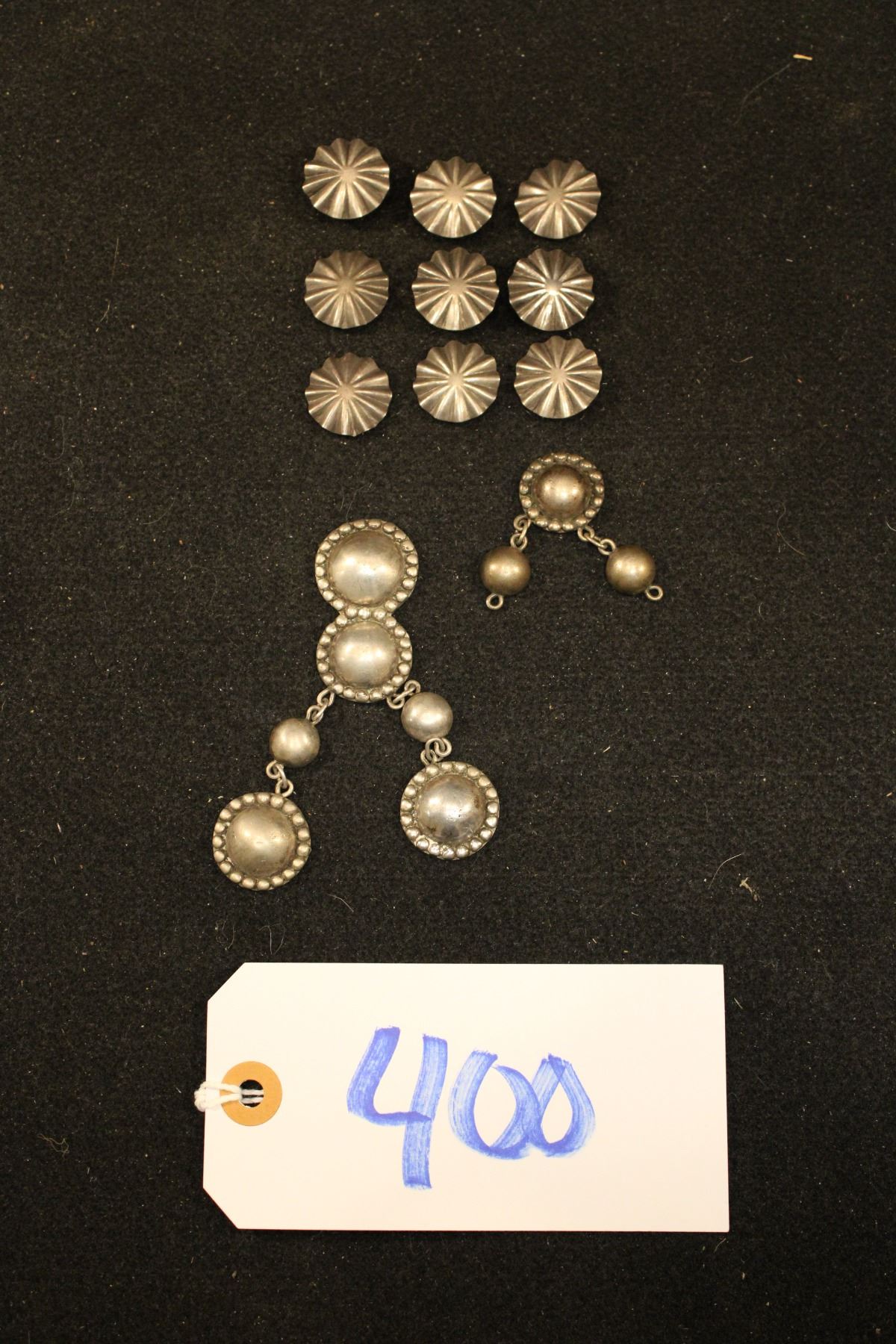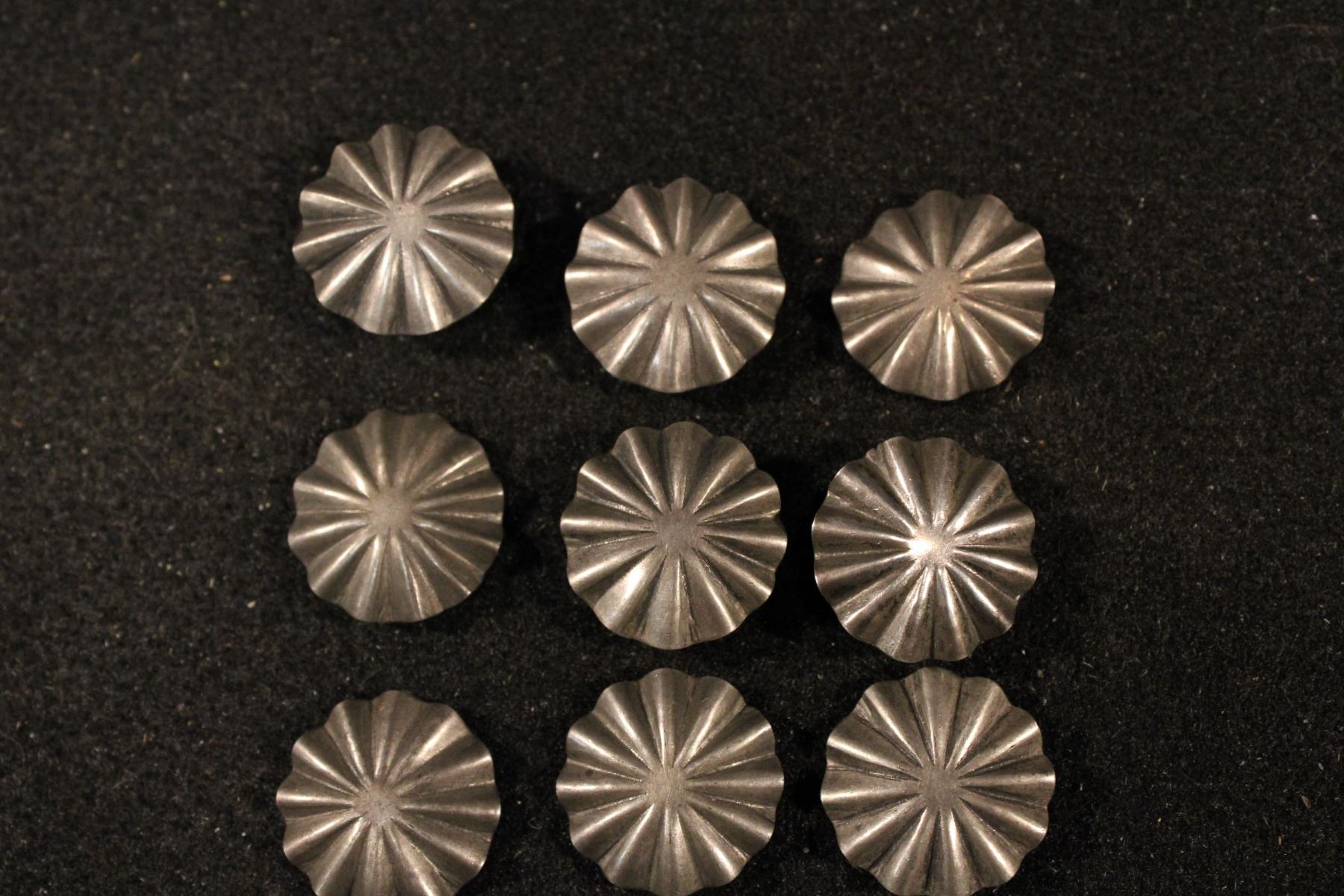 Lot of headstall silver and 9 Navajo style conchos. Unmarked.