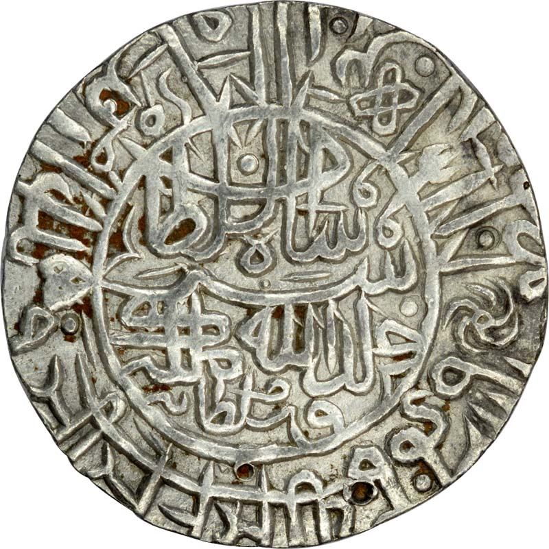 Delhi Sultanate, Suris Dynasty, Sher Shah Suri,Silver Rupee, AH949, Obv: al-sultan al-adil abul muzaffar farid al-dunya wal din, Rev: kalima shahada, Legends Differently Arranged, Different Mint marks in margin, Circular Areas Type, broad flan, 11.50g, 33.18mm, (GG # D826), about very fine, Scarce.