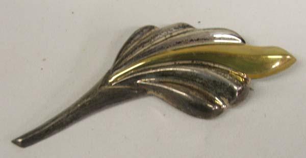 Silver Taxco Stylized Leaf Pin. Measures approx. 4.5''x1.5''. Buyers Pay Actual Shipping and Handling Charges(see terms and conditions for more information).