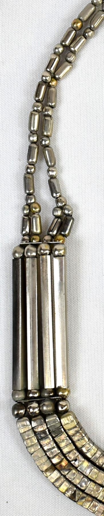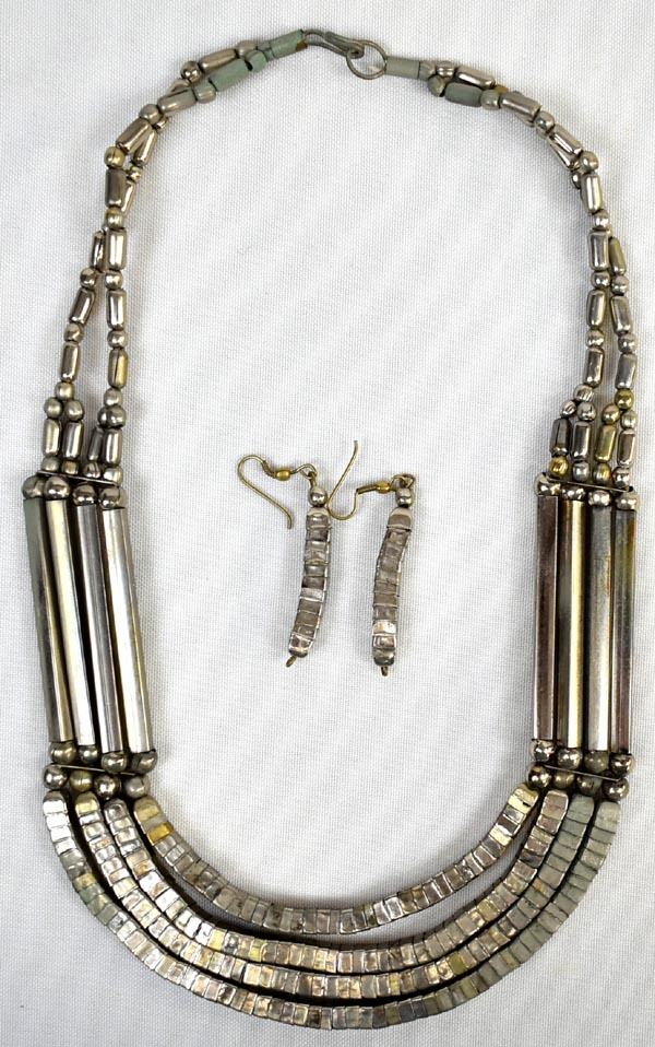 Silver Tone Beaded Necklace and Matching Earrings, necklace measures 19''L end to end, earrings measure 2.75''L which includes the wire
