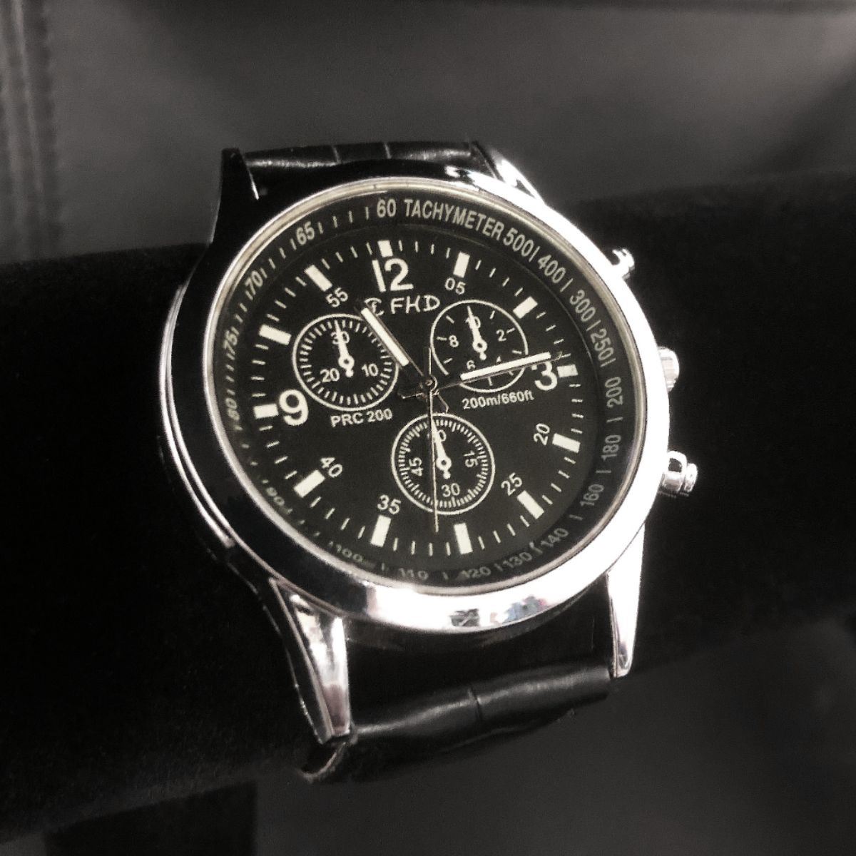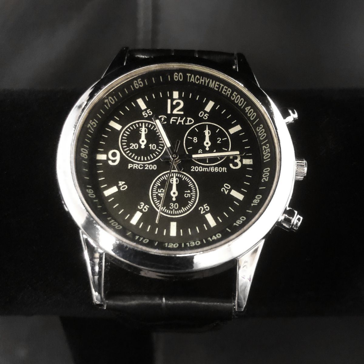 A Silver Colored Men's Wrist Watch With Black Band. Versatile enough to be paired with a blazer & loafers or with sneakers and a tee shirt. This watch elevates your everyday outfit. This watch has a sleek black dial and bezel with a silver toned casing, complimented by the black band. These colors go perfectly together, matching any outfit. It is built to last, easy to read, and looks good in any condition. View Pictures For Further Details
